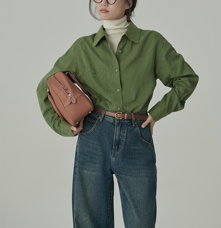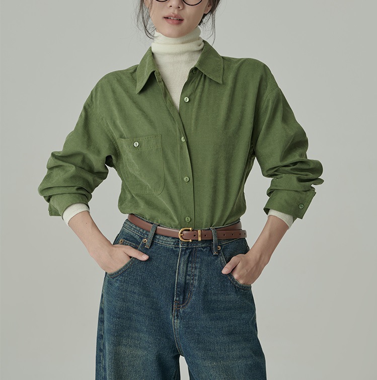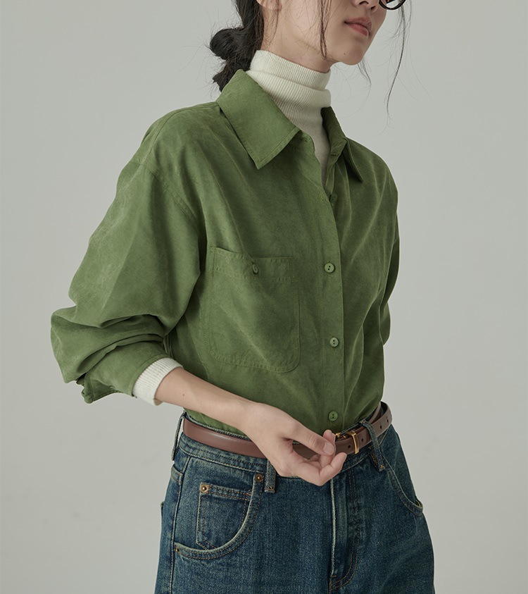 Meila Blue 샌딩 셔츠 여성의 가을과 겨울 코트 쌓인 최고 구리 황산염 Gao Zhijie 센스 셔츠