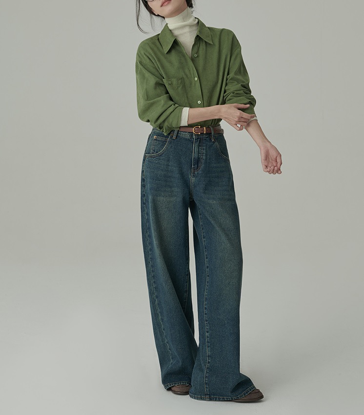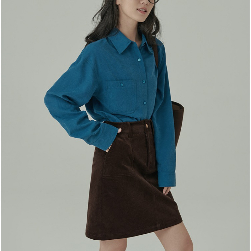 Meila Blue 샌딩 셔츠 여성의 가을과 겨울 코트 쌓인 최고 구리 황산염 Gao Zhijie 센스 셔츠스토어 가기