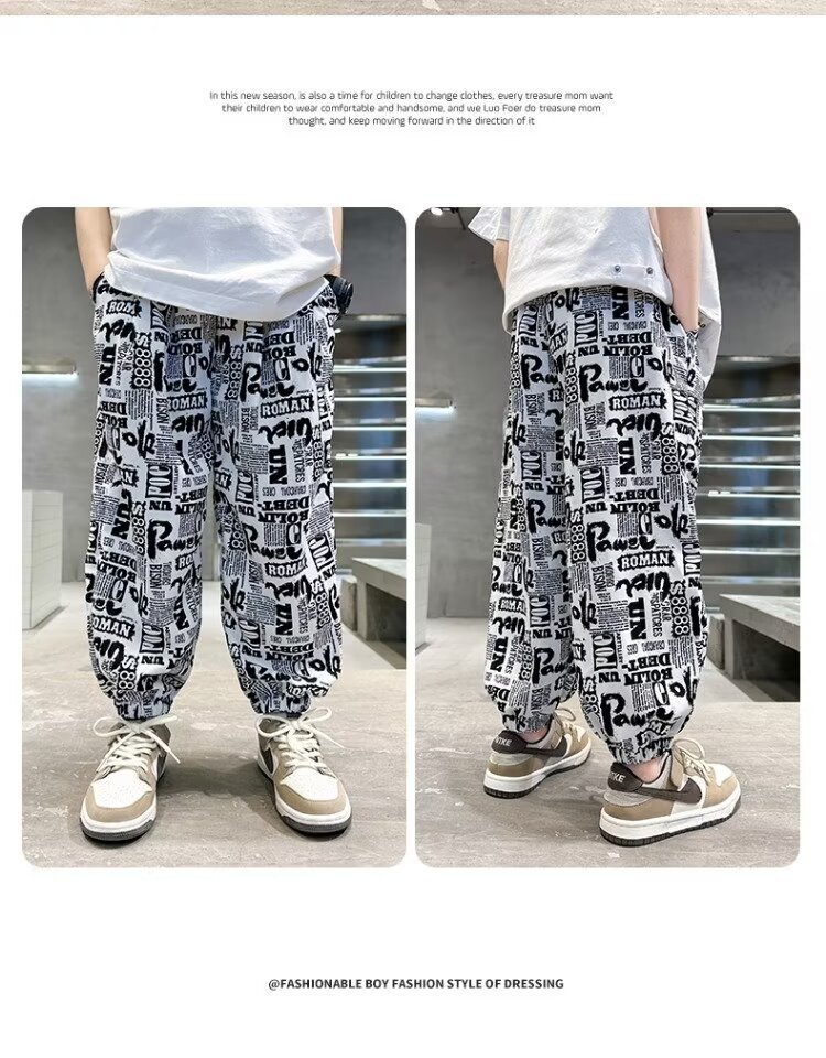소년의 모기 방지 바지 여름 얇은 얼음 실크 바지 대형 어린이 캐주얼 바지 2025 새로운 어린이 트렌디 한 외부 착용 바지스토어 가기