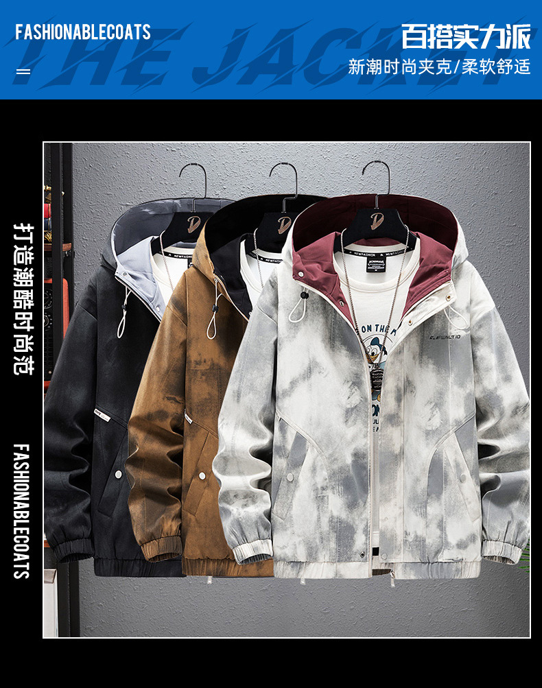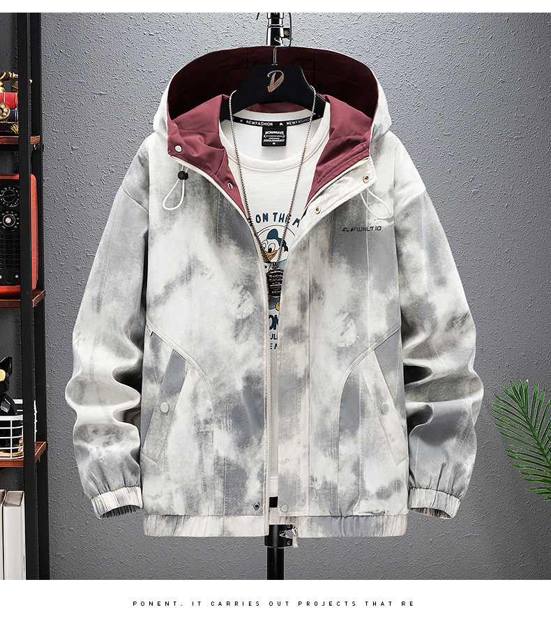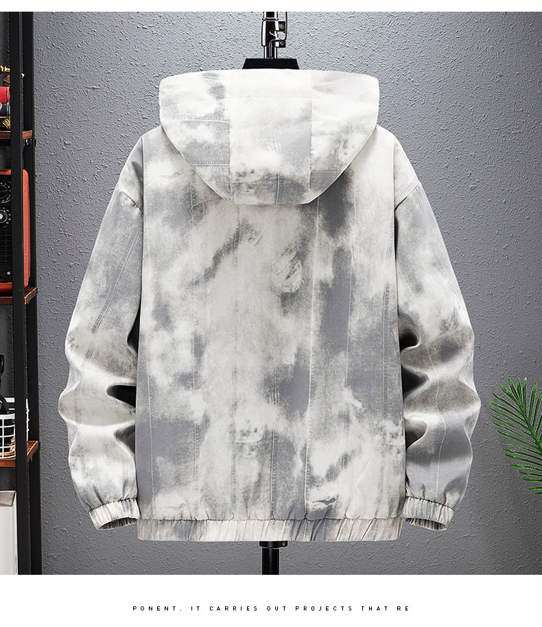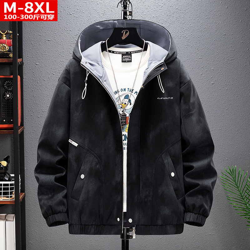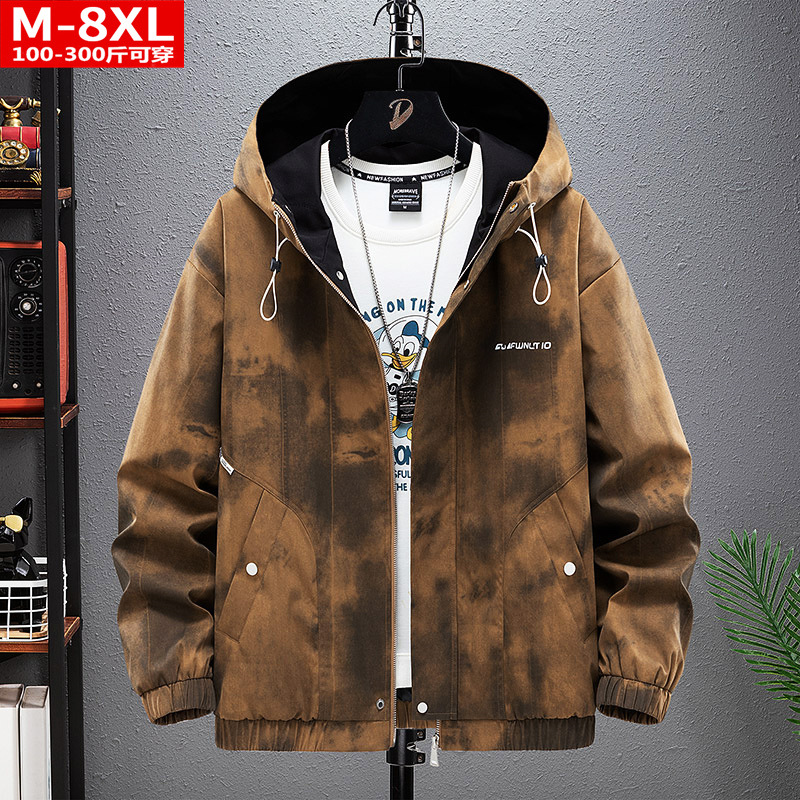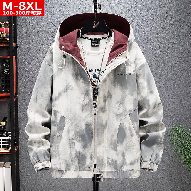 봄과 가을 트렌디 한 홍콩 스타일 남성 잘 생긴 패션 인쇄 후드 자켓 통통한 대형 플러스 뚱뚱한 느슨한 캐주얼 자켓스토어 가기