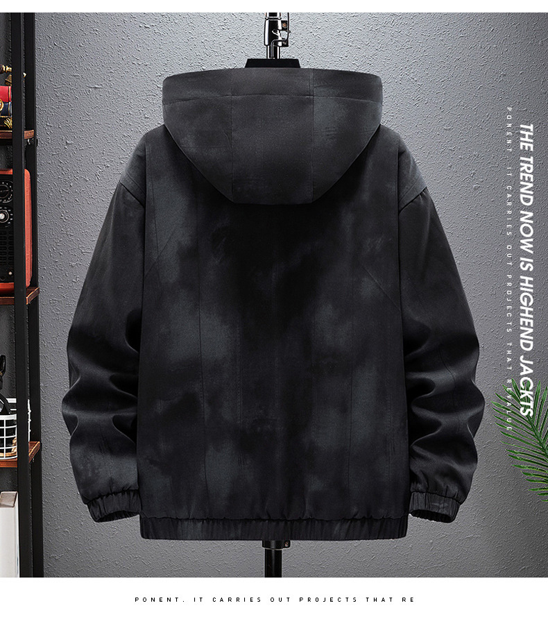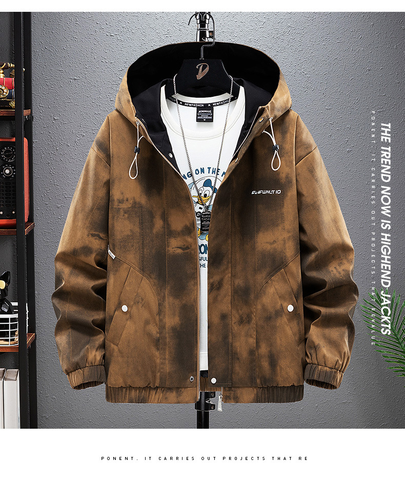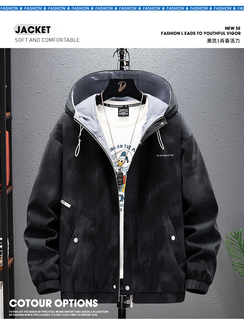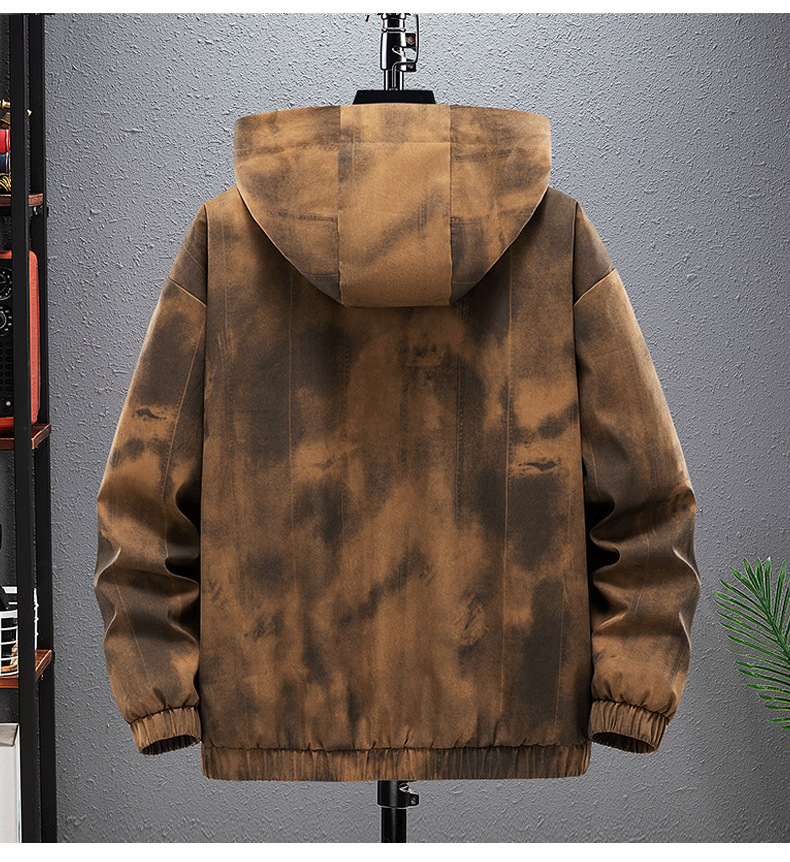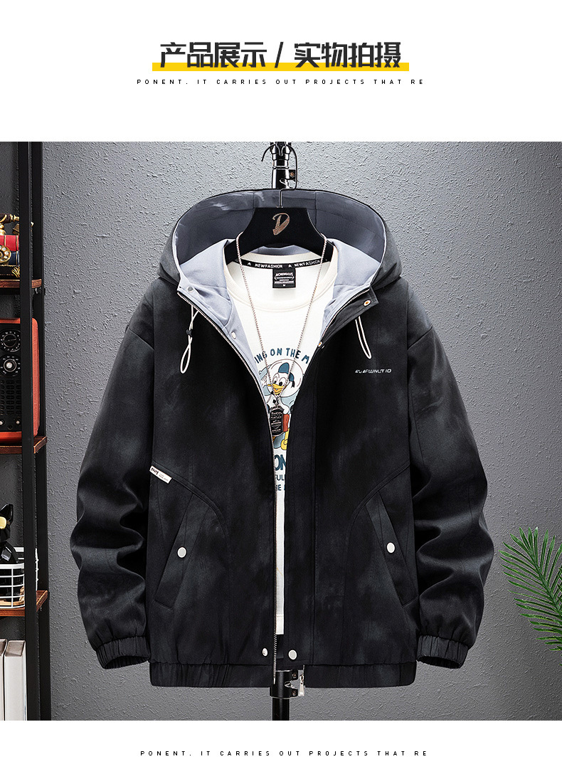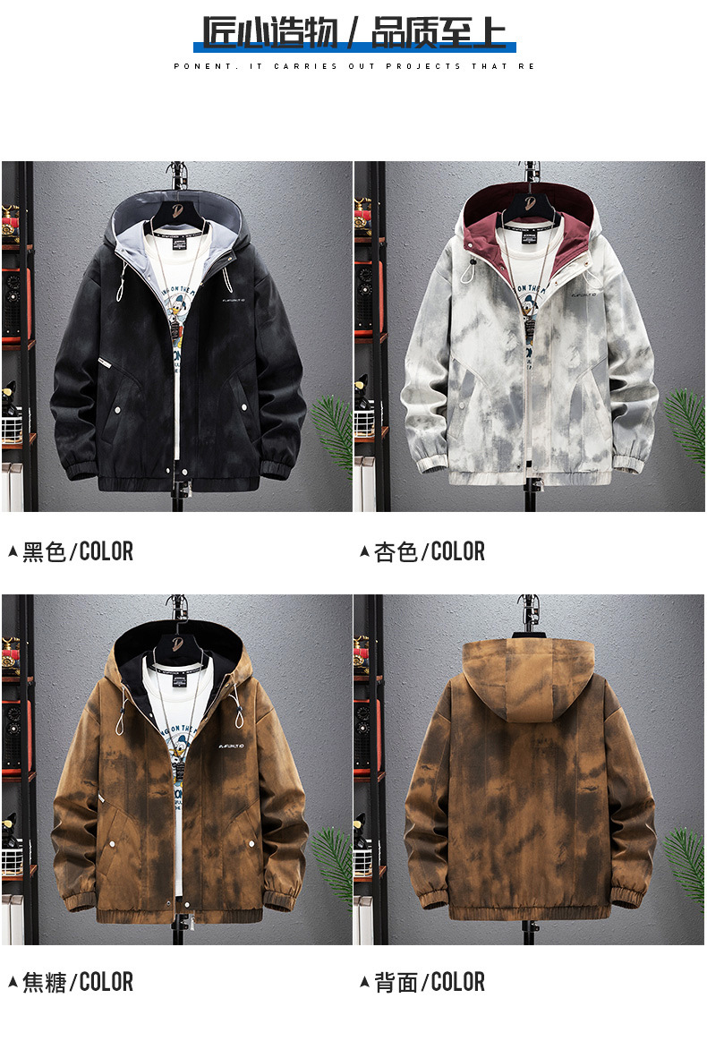 봄과 가을 트렌디 한 홍콩 스타일 남성 잘 생긴 패션 인쇄 후드 자켓 통통한 대형 플러스 뚱뚱한 느슨한 캐주얼 자켓스토어 가기