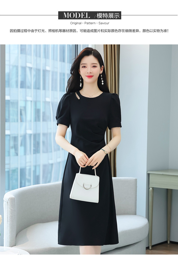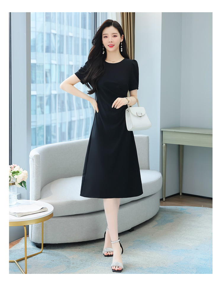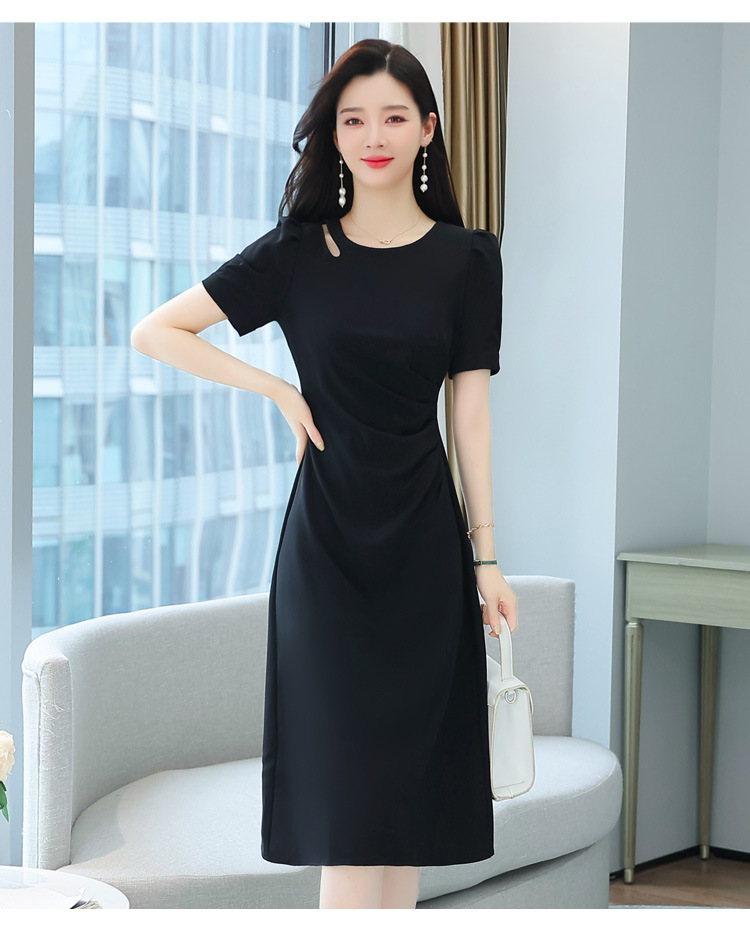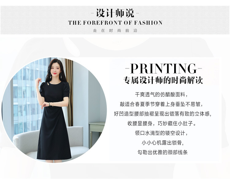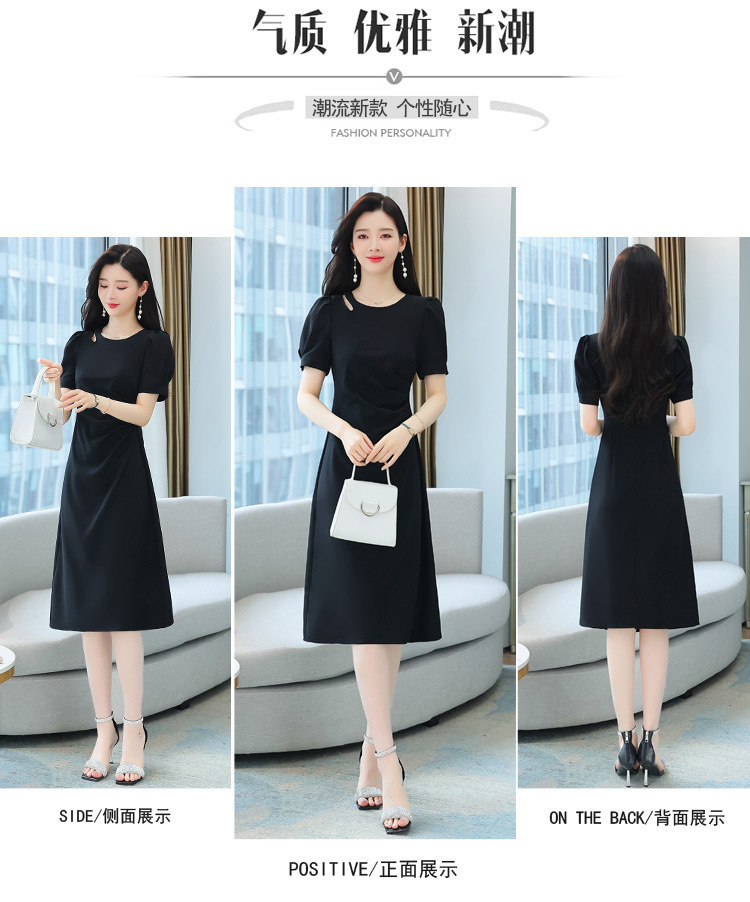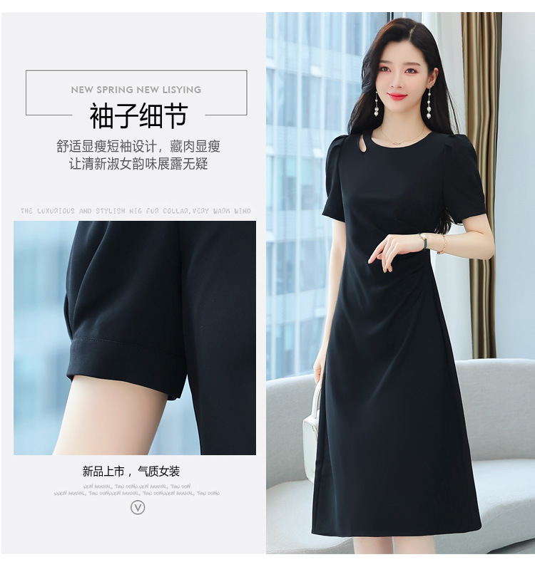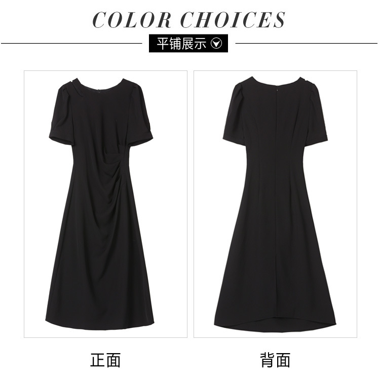 여름 새로운 헵번 스타일 블랙 스커트 여성 블랙 반팔 라운드 넥 우아한 슬림 핏 원피스스토어 가기