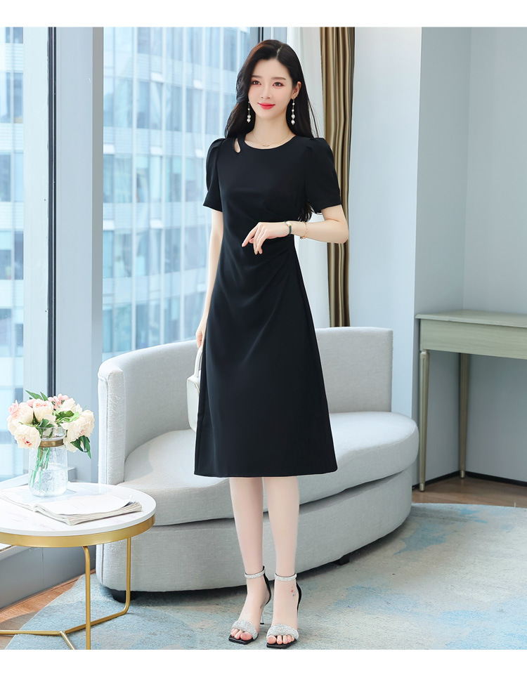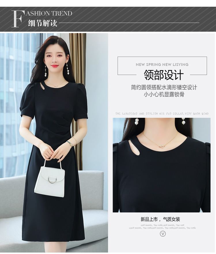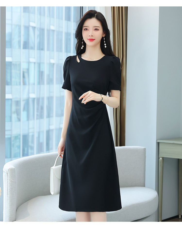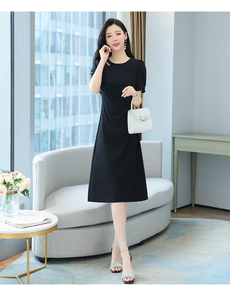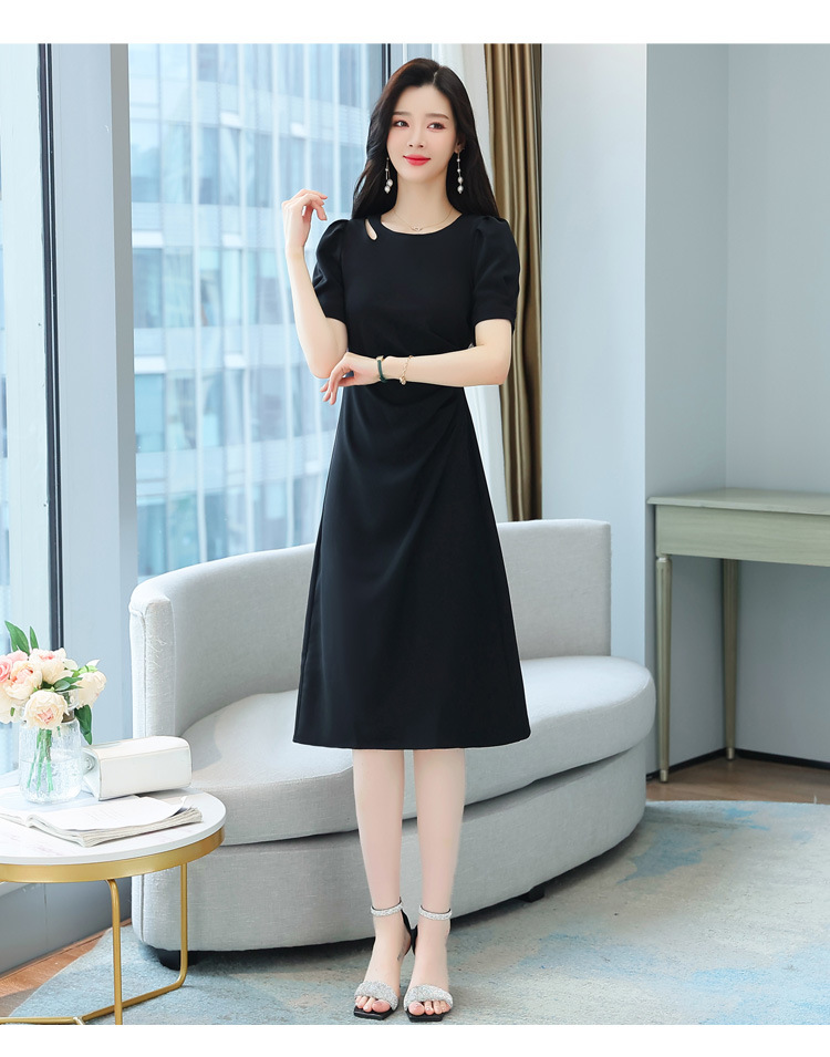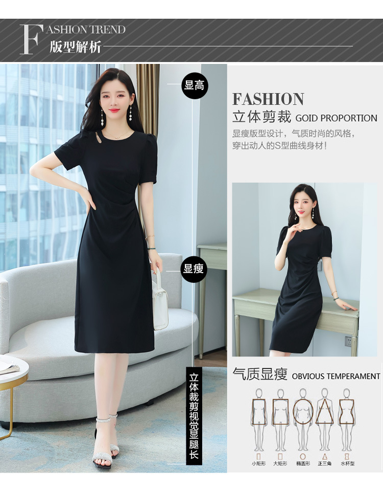 여름 새로운 헵번 스타일 블랙 스커트 여성 블랙 반팔 라운드 넥 우아한 슬림 핏 원피스스토어 가기