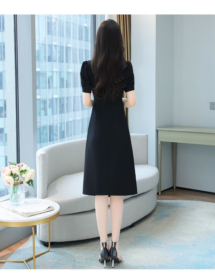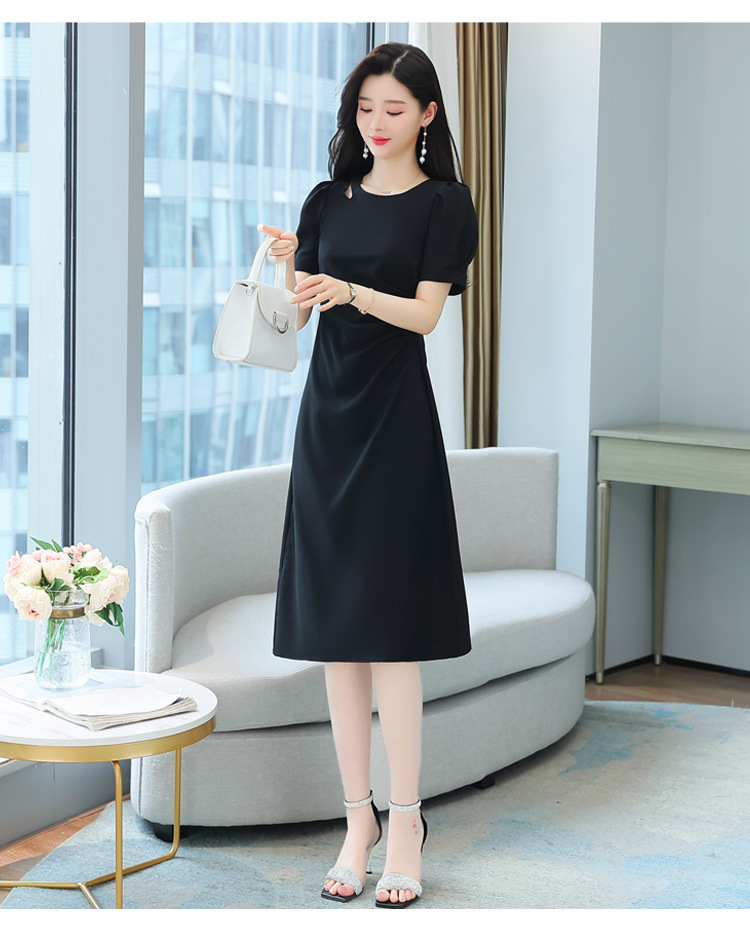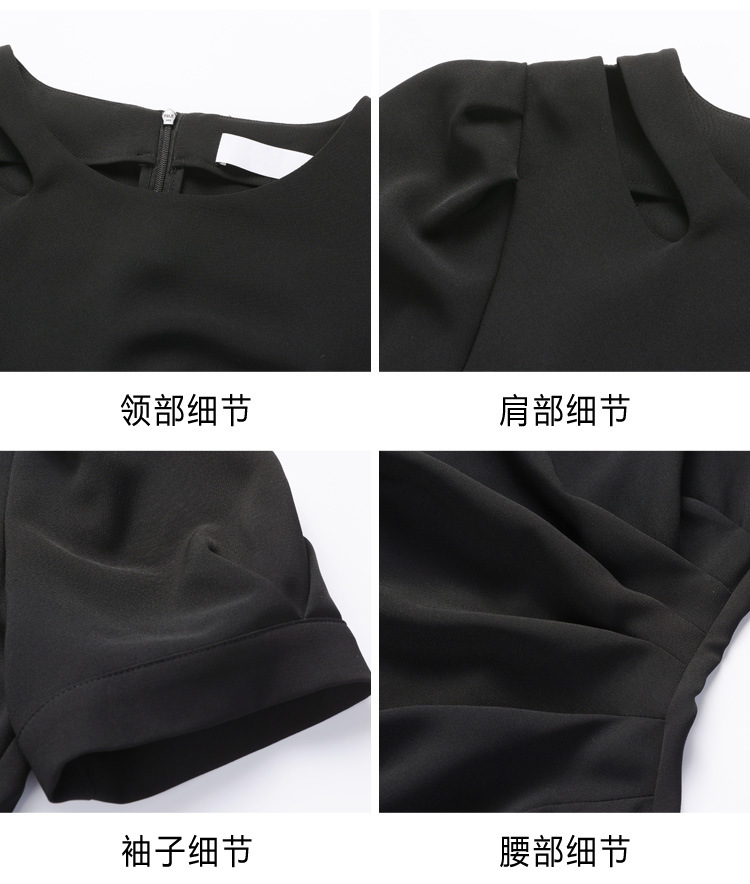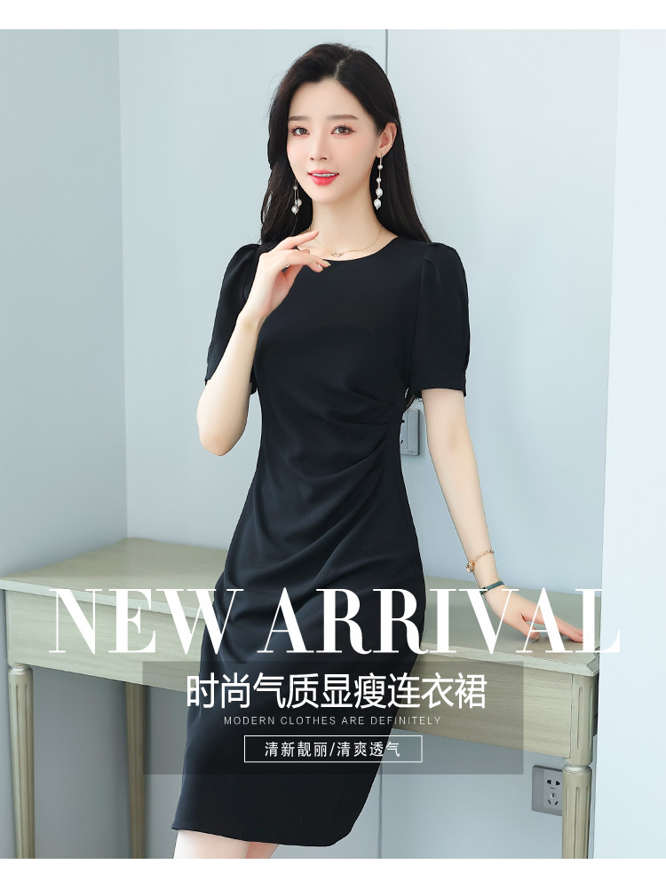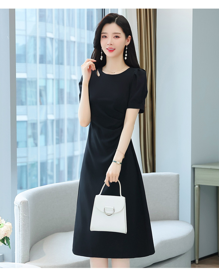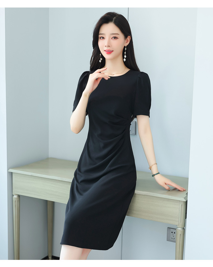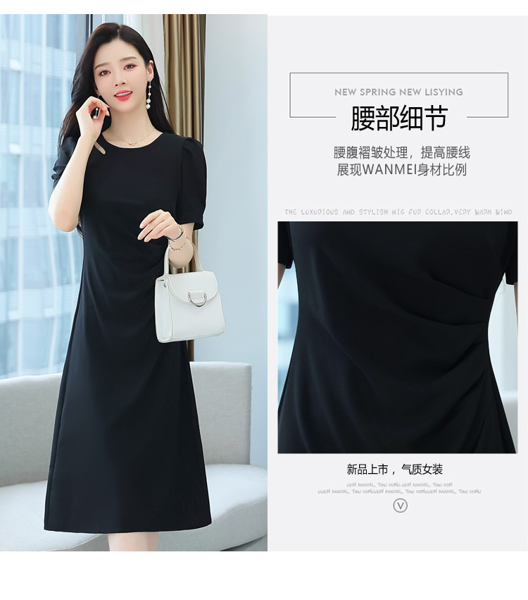 여름 새로운 헵번 스타일 블랙 스커트 여성 블랙 반팔 라운드 넥 우아한 슬림 핏 원피스스토어 가기