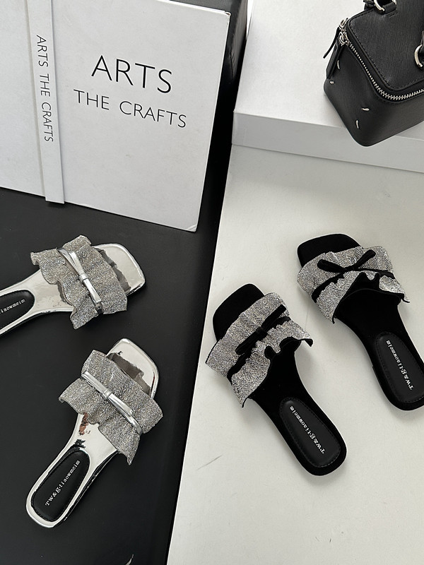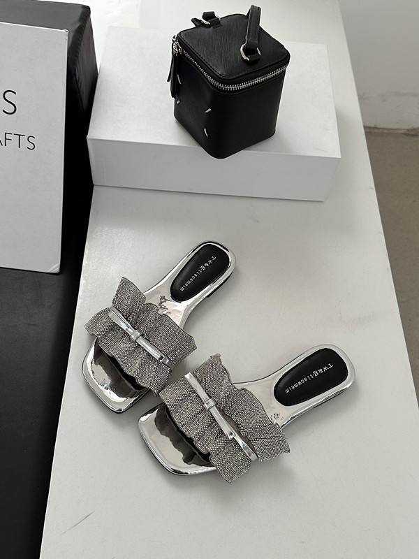 양가죽 프랑스 스타일 활 슬라이드 슬리퍼 여성 여름 의상 광장 발가락 플랫 비치 샌들