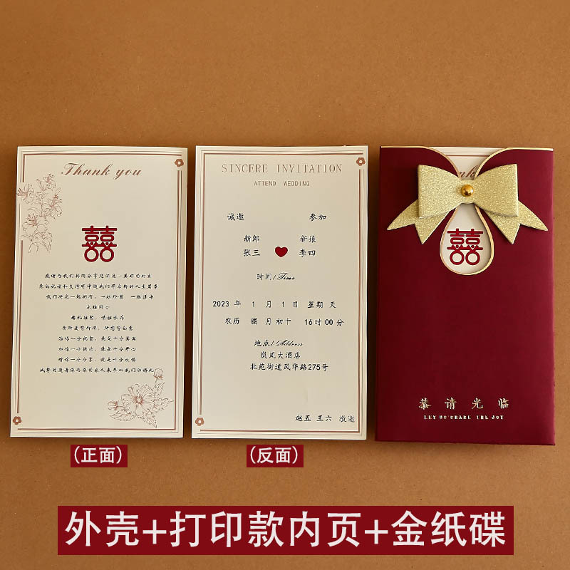 초대장 2024 새로운 결혼식 초대장 결혼식 연회 초대장 인쇄 청동 중국 스타일 결혼식 초대장 틈새 참여