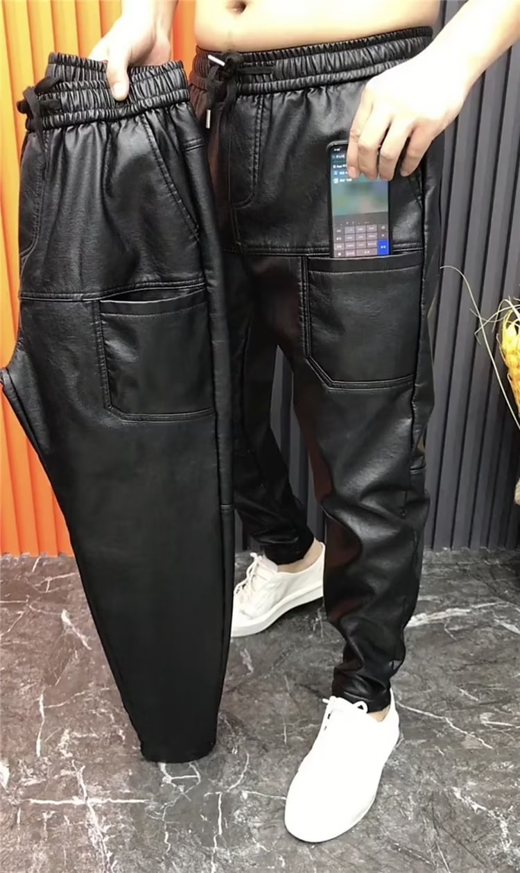 봄과 가을 가죽 바지 남성용 캐주얼 바지 방수 워시프리 바지 유행 검은 다리 바지 오토바이 PU 레깅스스토어 가기