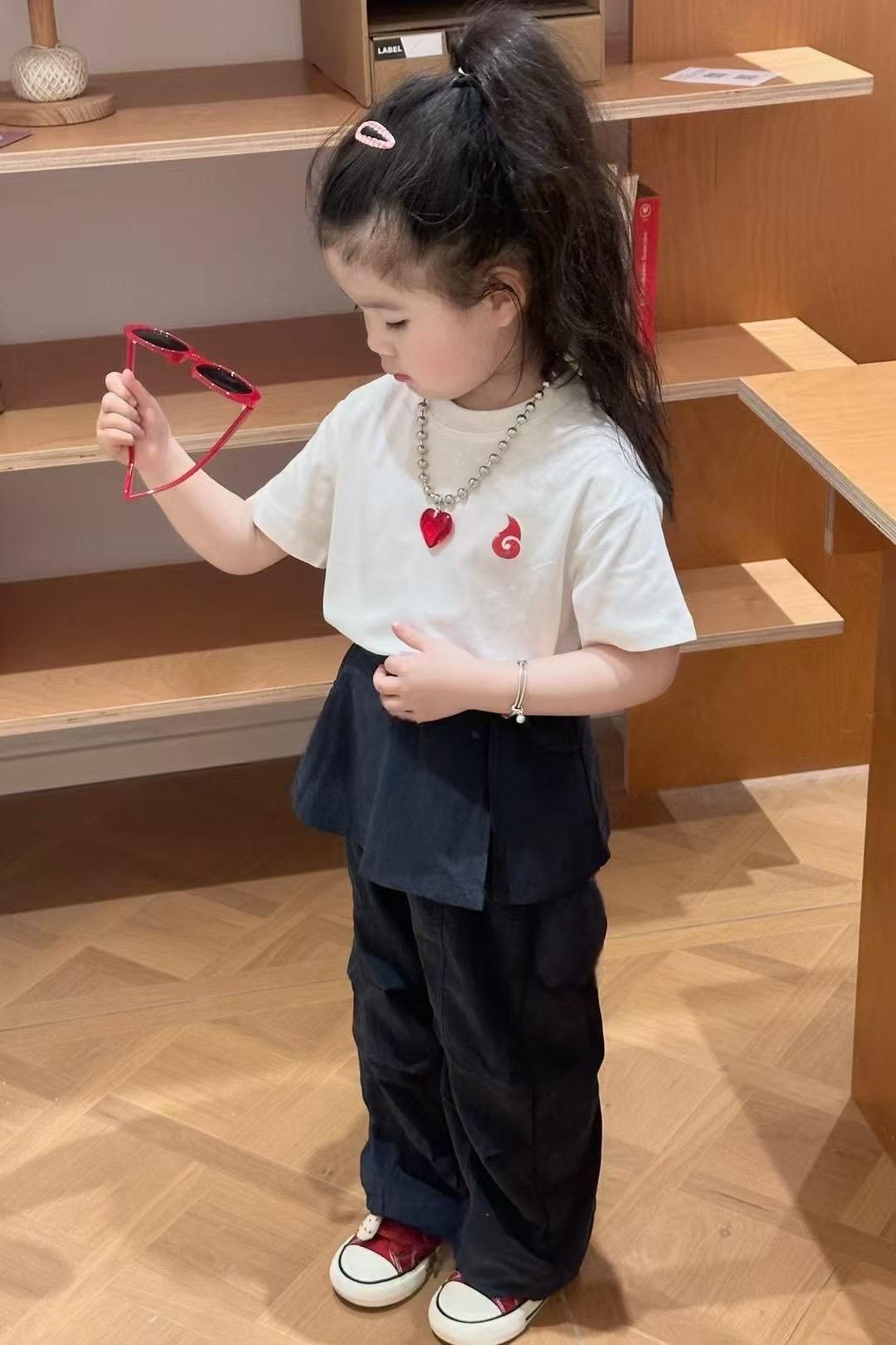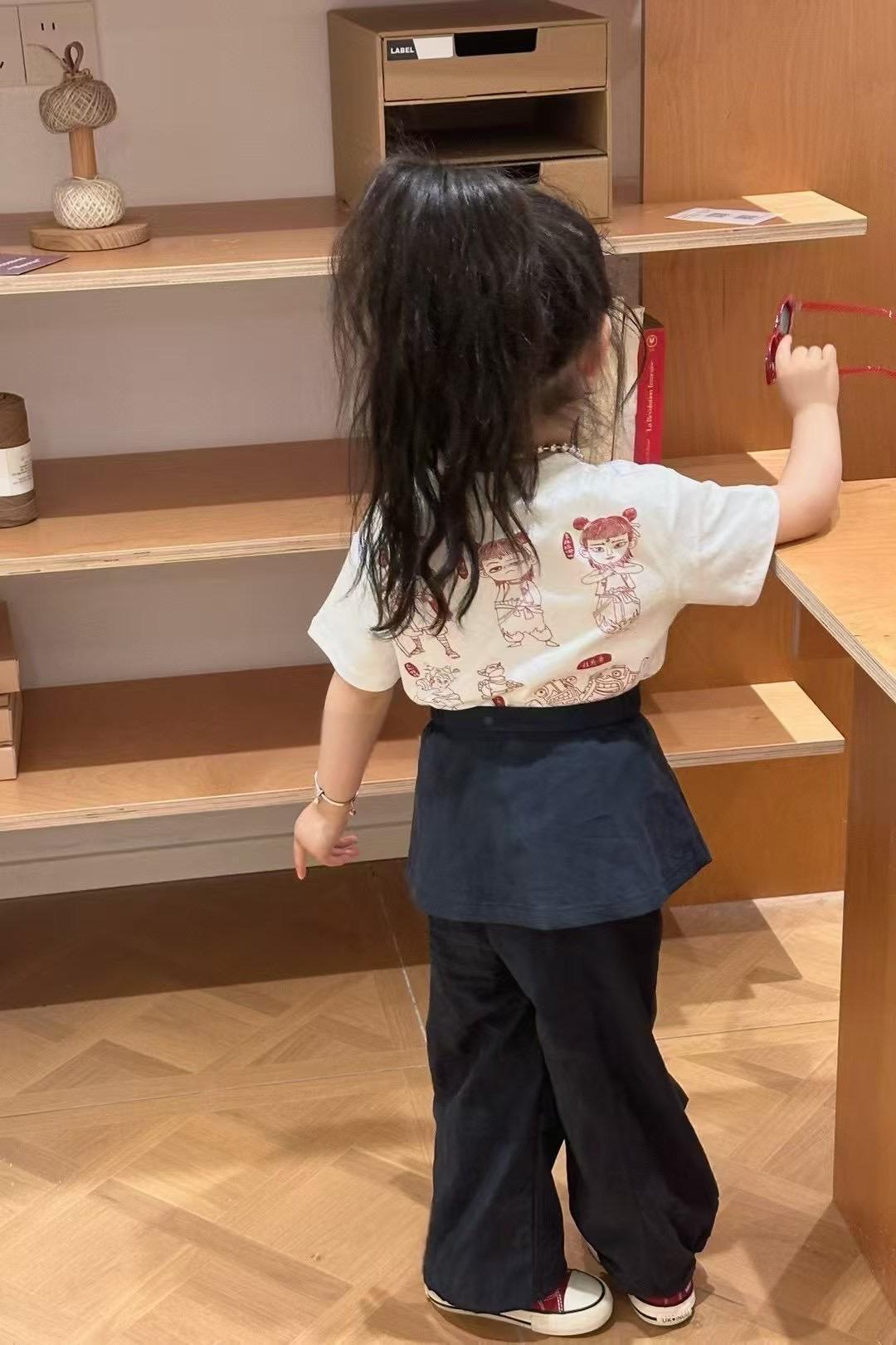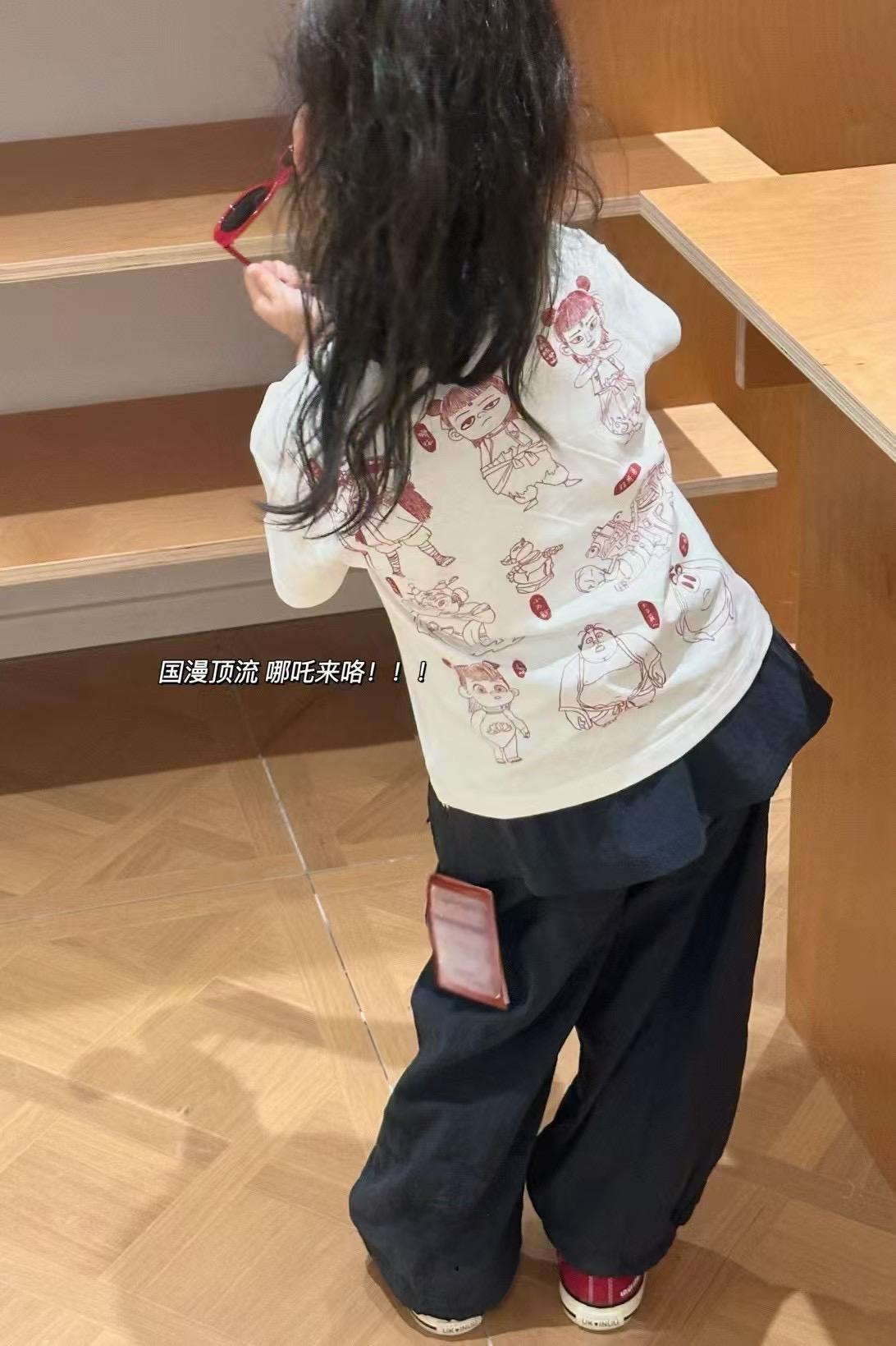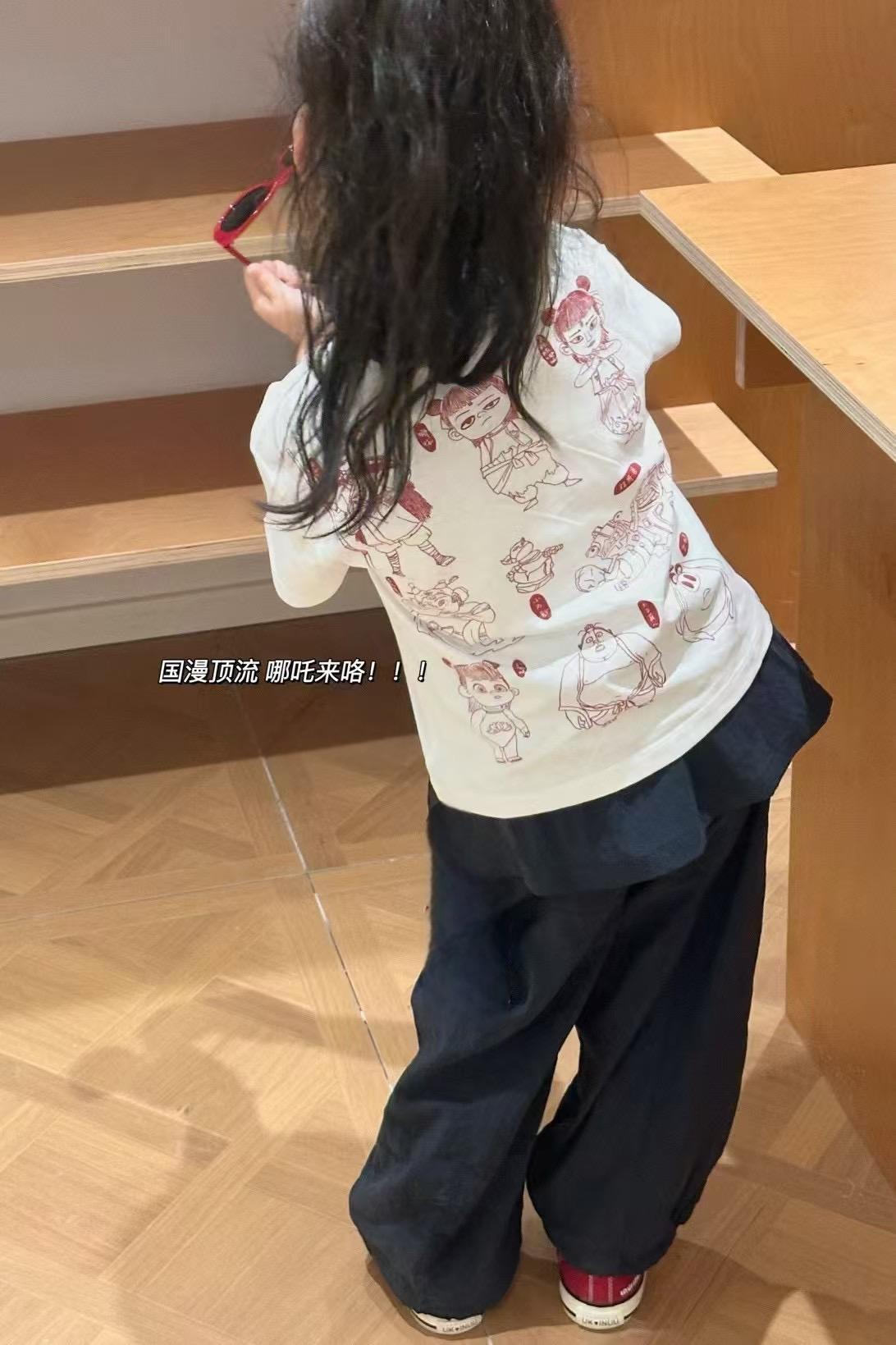 한국 스타일 아동복 여름 화이트 네자 인쇄 반팔 티셔츠 소년 소녀 만화 애니메이션 루즈 탑 트렌디스토어 가기
