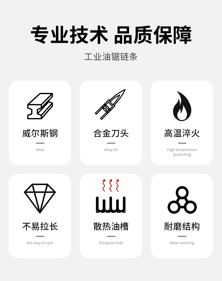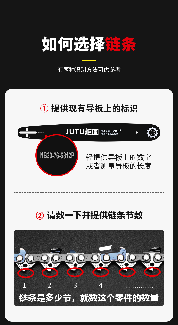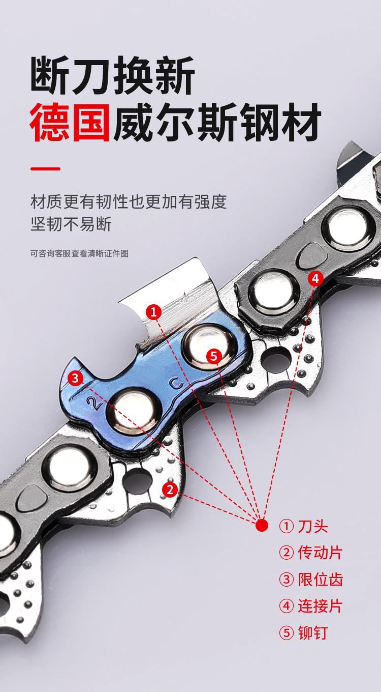 • 20인치, 38개 칼, 76개 섹션 체인 + 가이드 플레이트