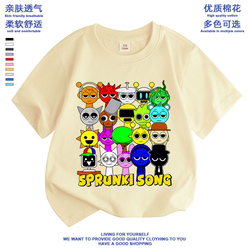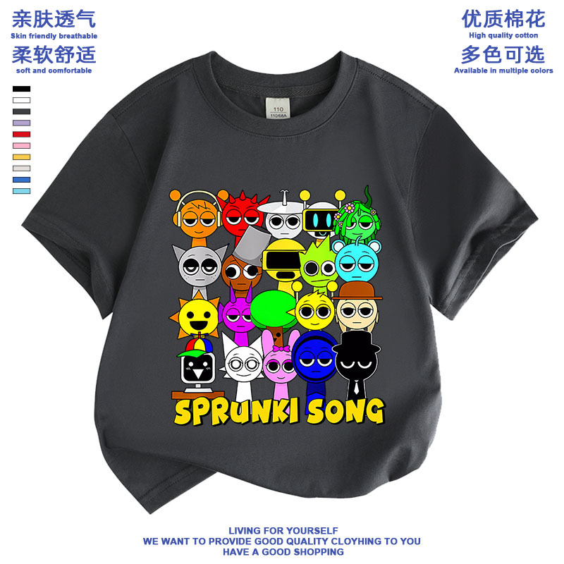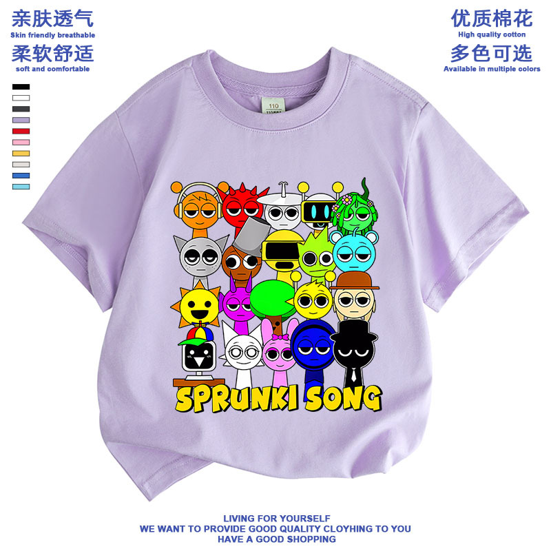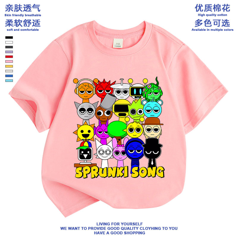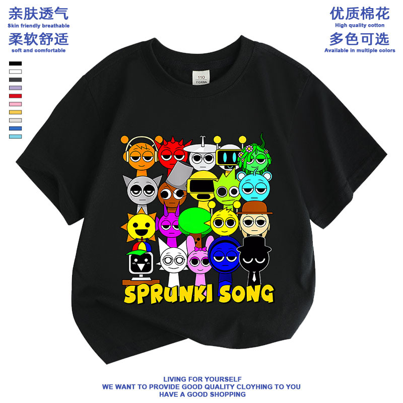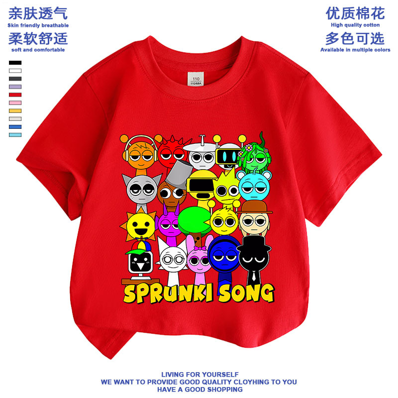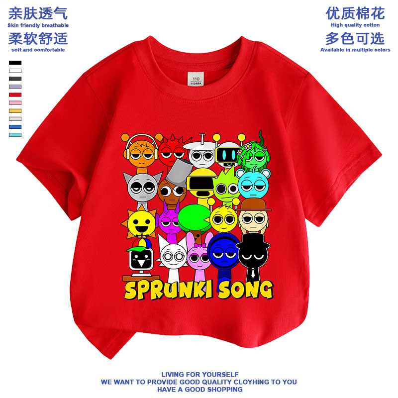 리듬 박스 티셔츠 어린이 짧은 소매 옷 sprunki 음악 게임 남자와 여자를위한 탑 코튼 여름 반 소매