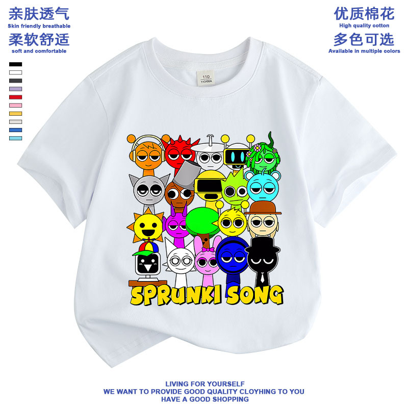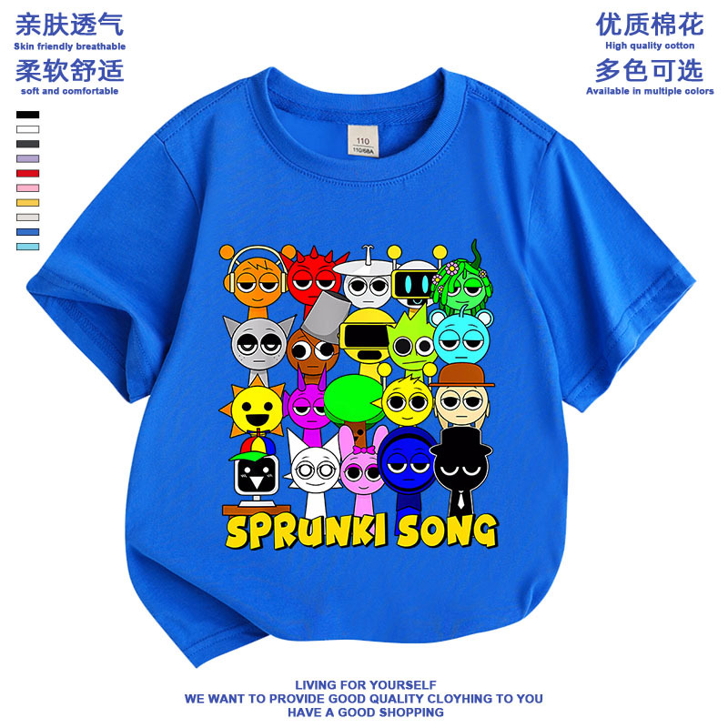 리듬 박스 티셔츠 어린이 짧은 소매 옷 sprunki 음악 게임 남자와 여자를위한 탑 코튼 여름 반 소매스토어 가기