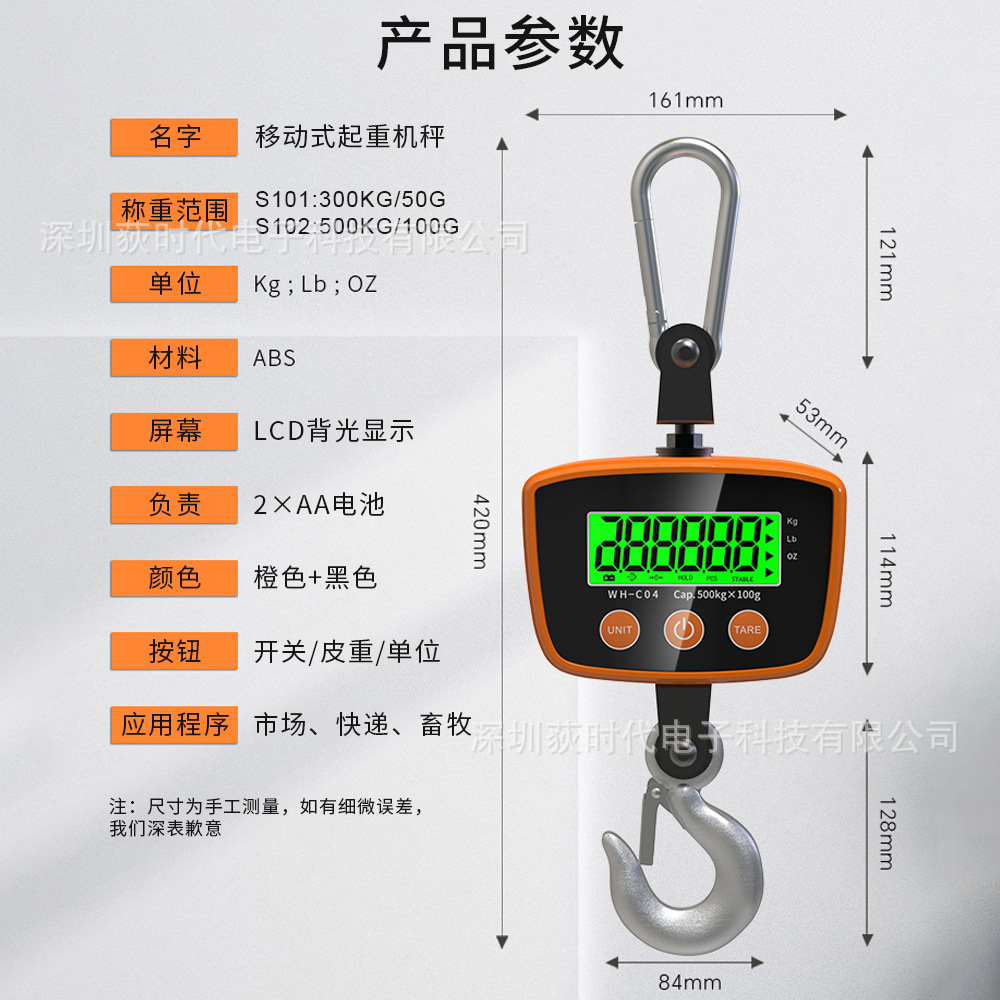 국경 휴대용 휴대용 크레인 스케일 전자 크레인 스케일 높은 정밀도 무게 300kg/500kg 전자 규모