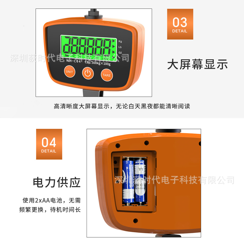 국경 휴대용 휴대용 크레인 스케일 전자 크레인 스케일 높은 정밀도 무게 300kg/500kg 전자 규모스토어 가기