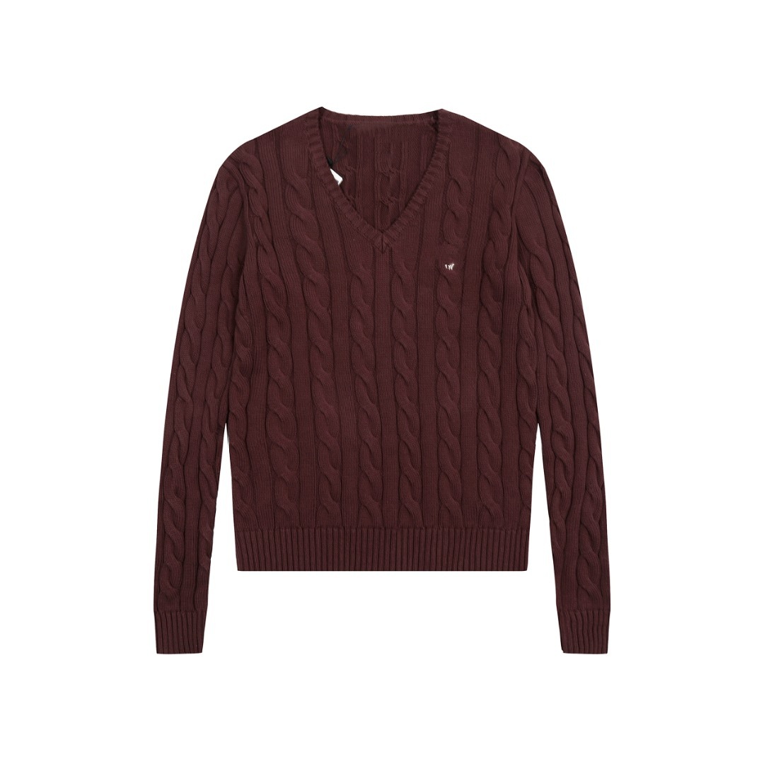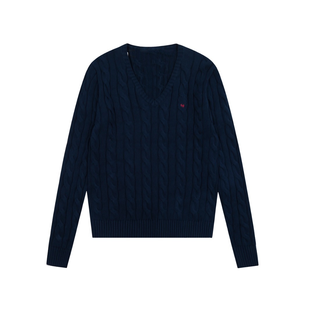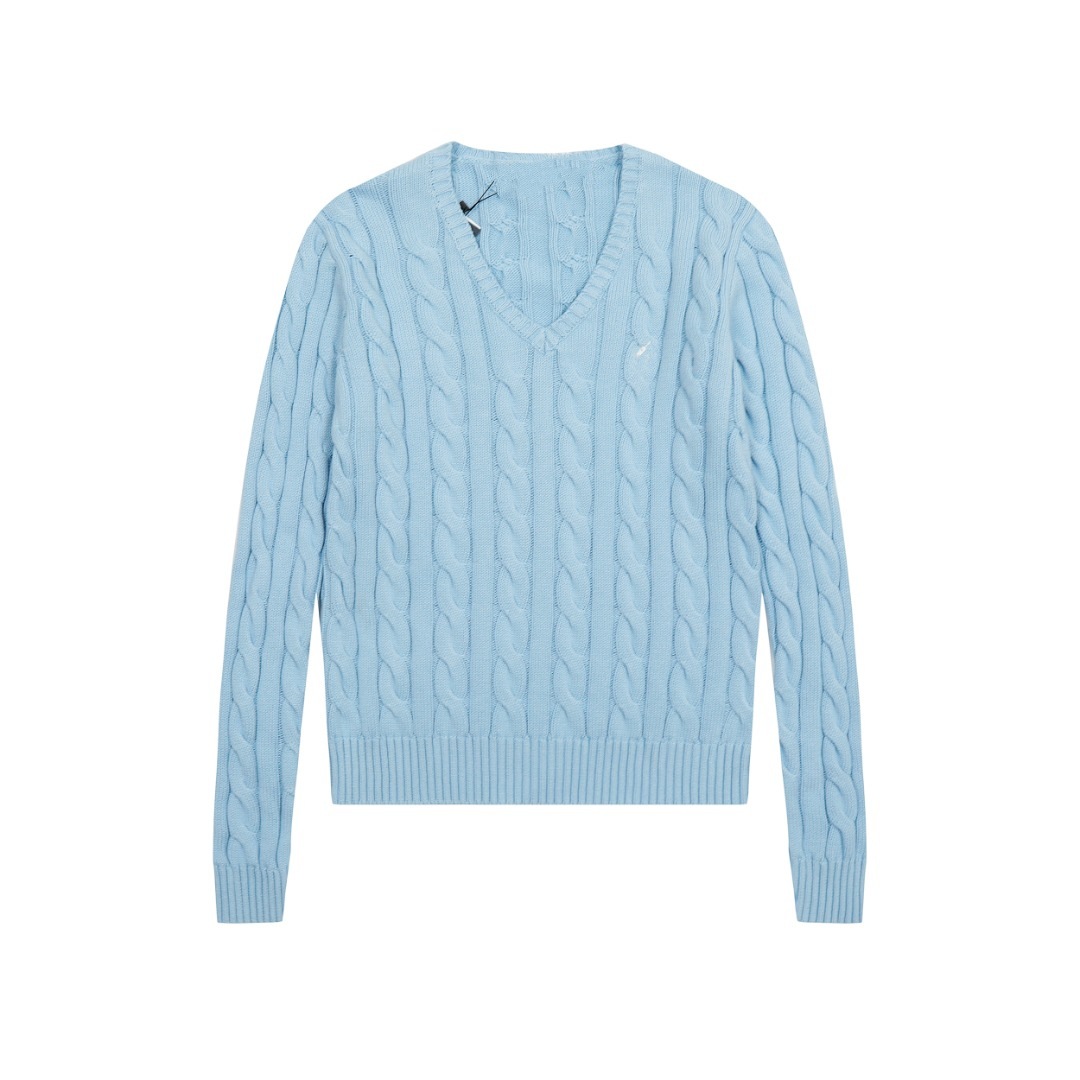 SSS는 25가지 새로운 스웨터, 포니 로고 자수 트위스트, 다용도 솔리드 컬러 브이넥 니트 여성용 탑을 스캔할 수 있습니다.스토어 가기