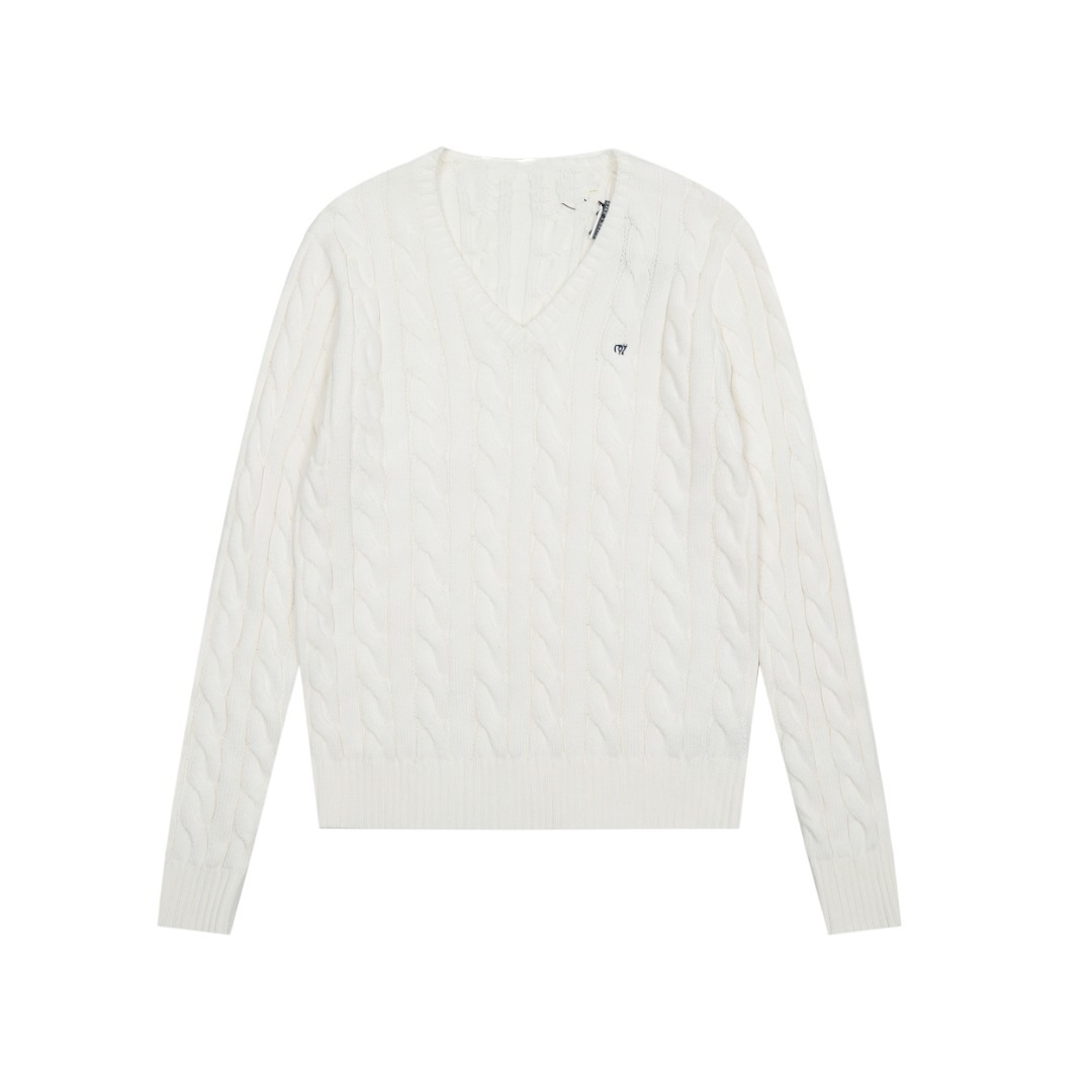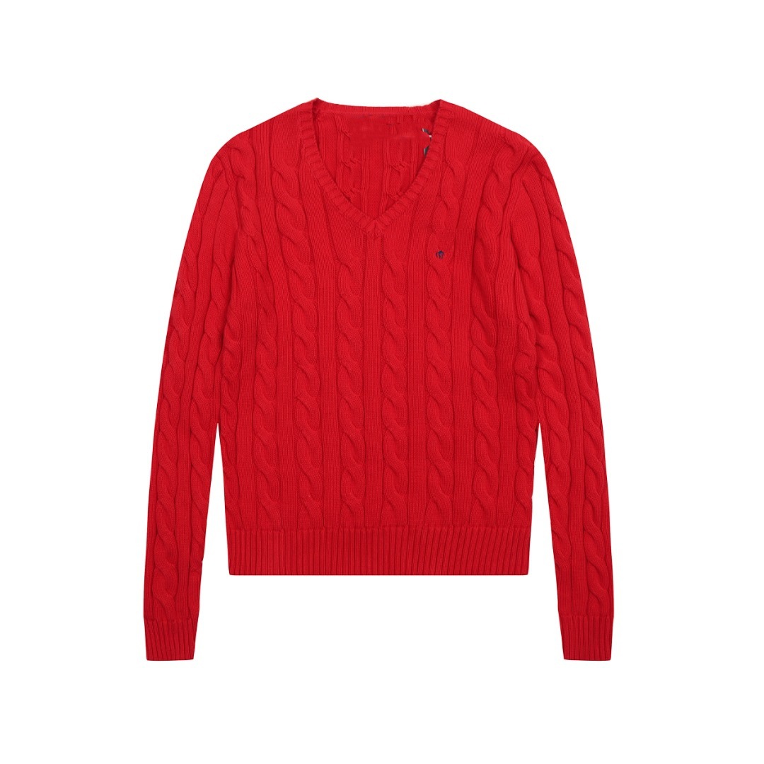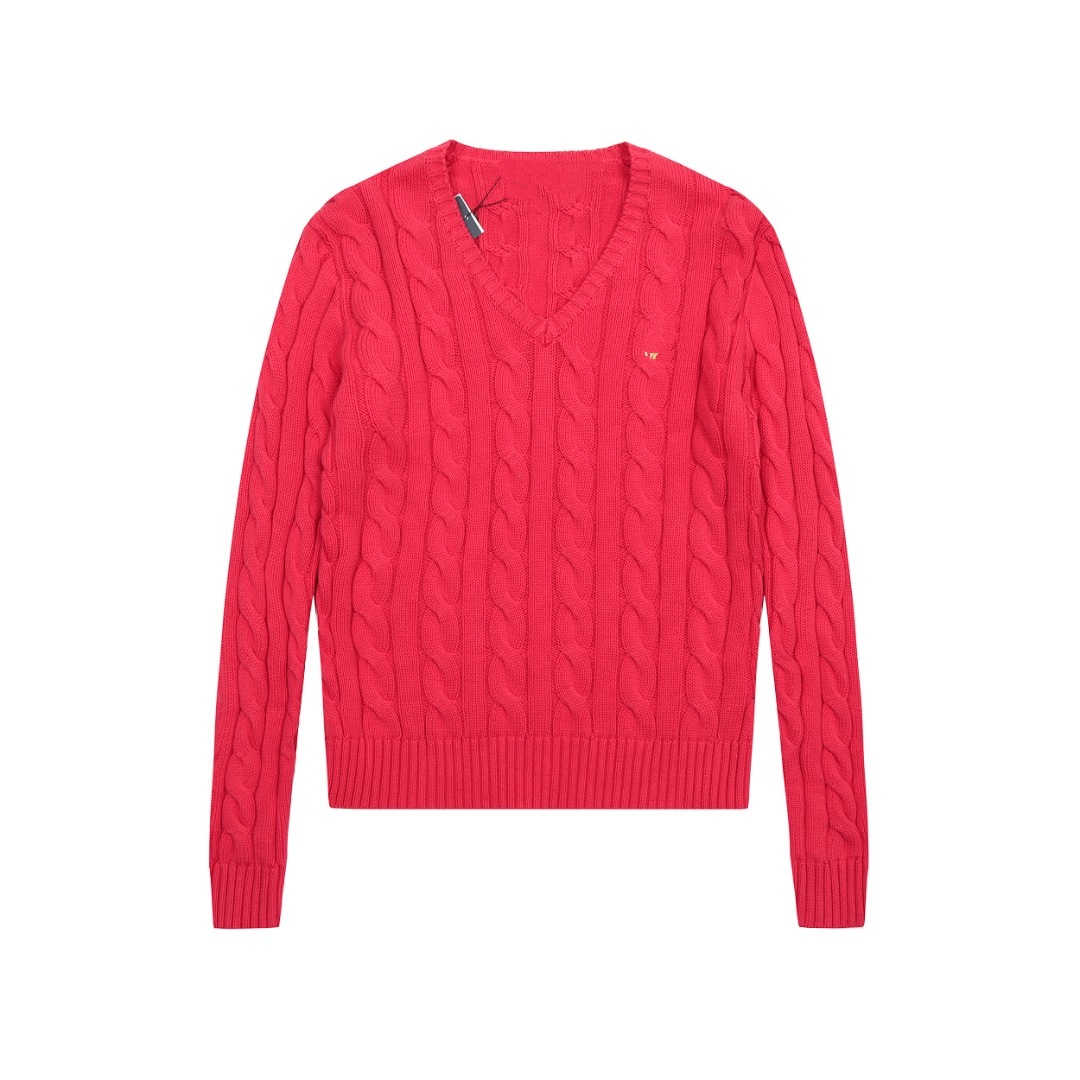 SSS는 25가지 새로운 스웨터, 포니 로고 자수 트위스트, 다용도 솔리드 컬러 브이넥 니트 여성용 탑을 스캔할 수 있습니다.스토어 가기