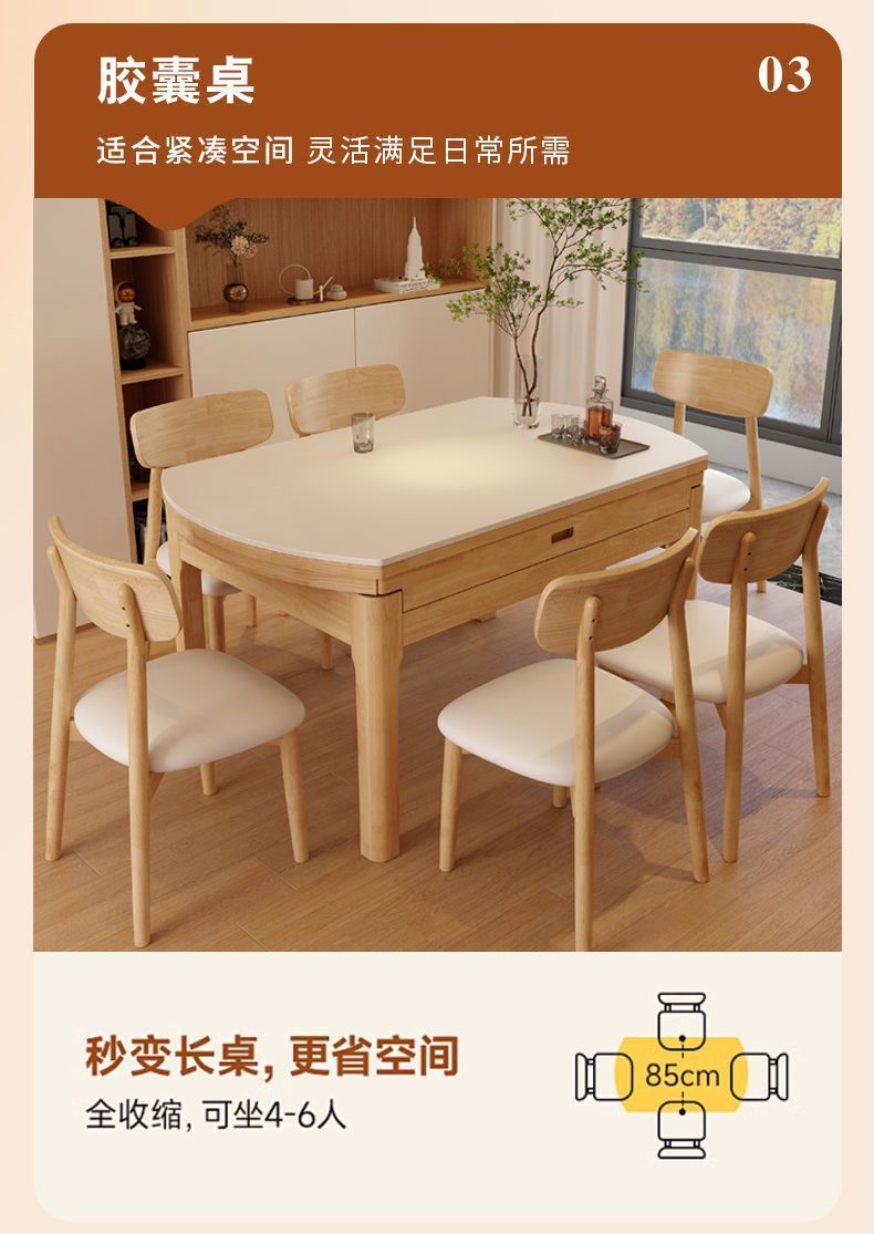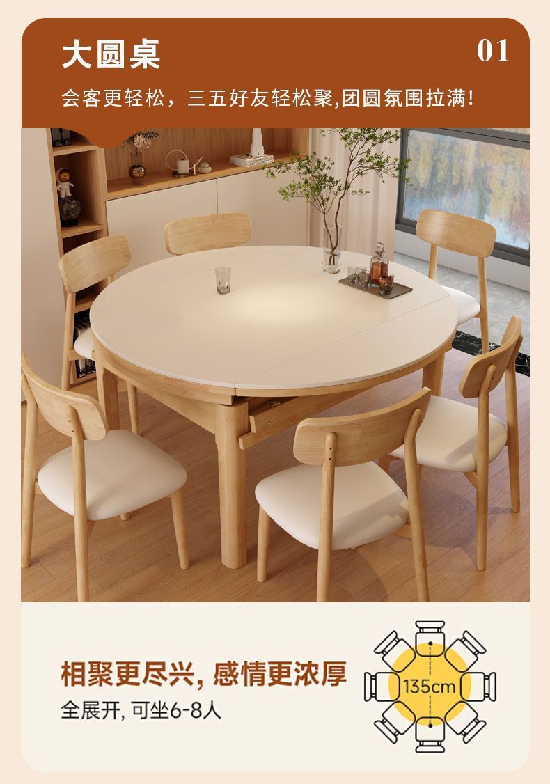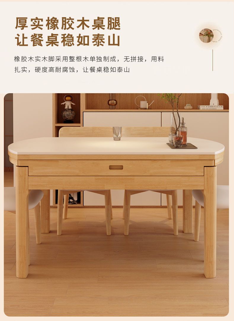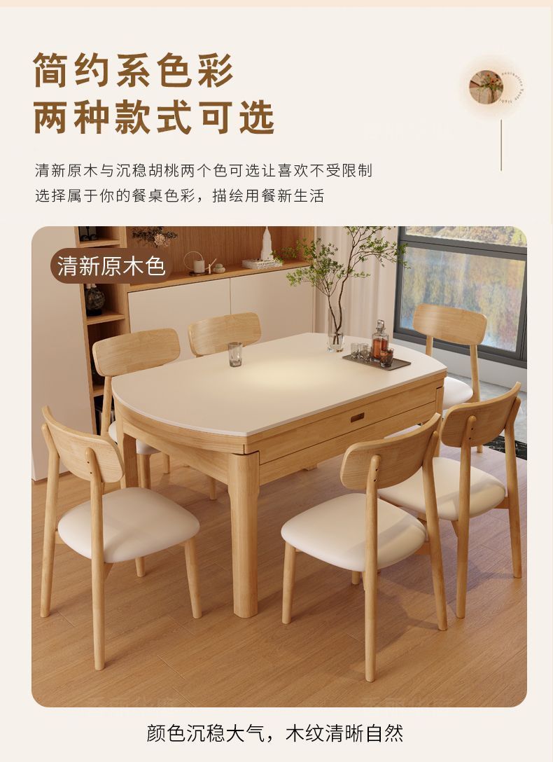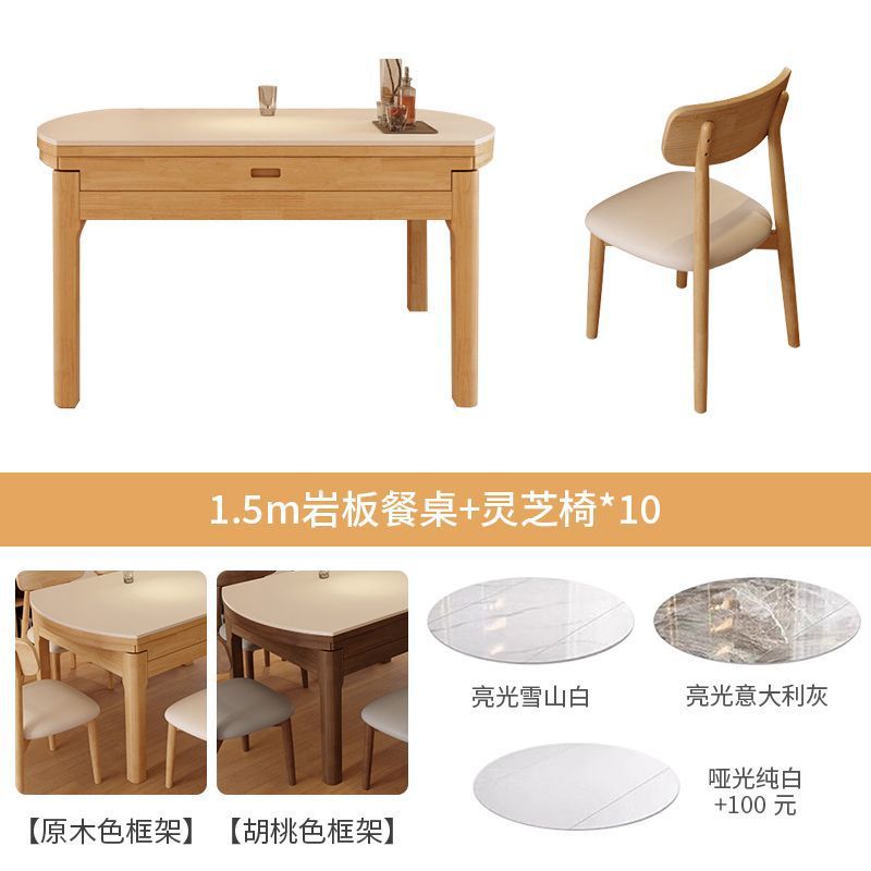 단단한 나무 바위 보드 식탁 및 의자 가정용 로그 색상 현대 간단한 작은 아파트 크림 스타일 광장 및 라운드 이중 목적 망원경 테이블스토어 가기