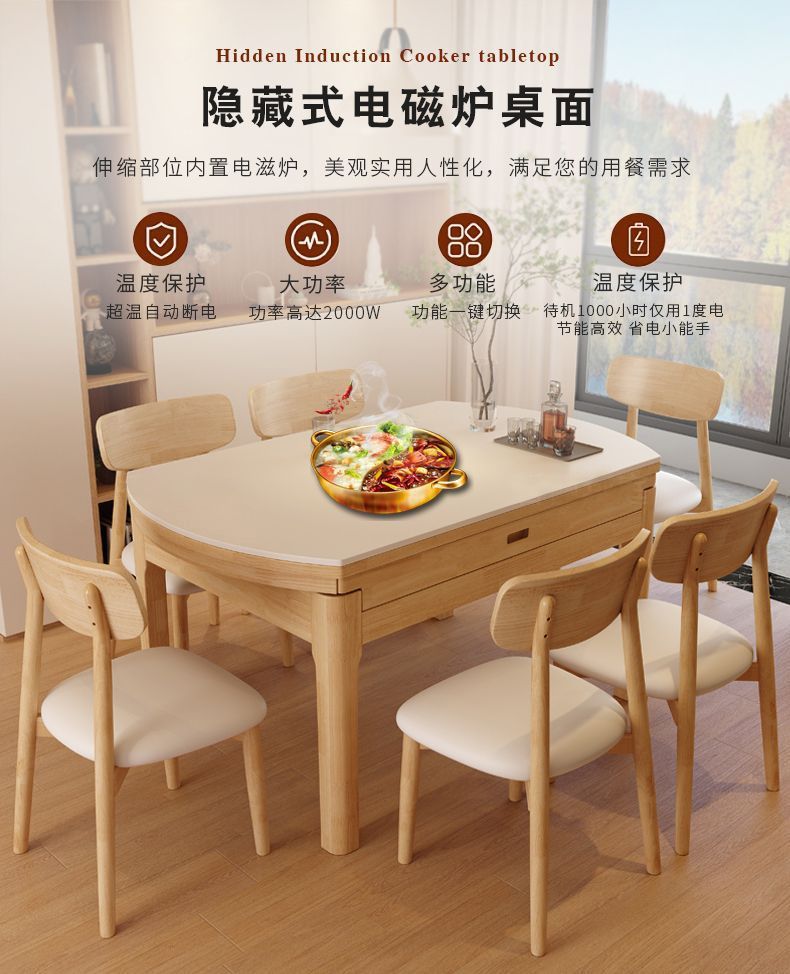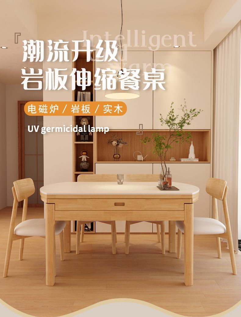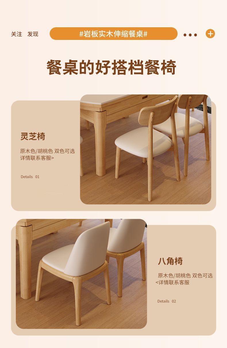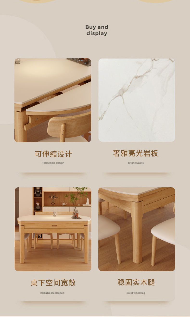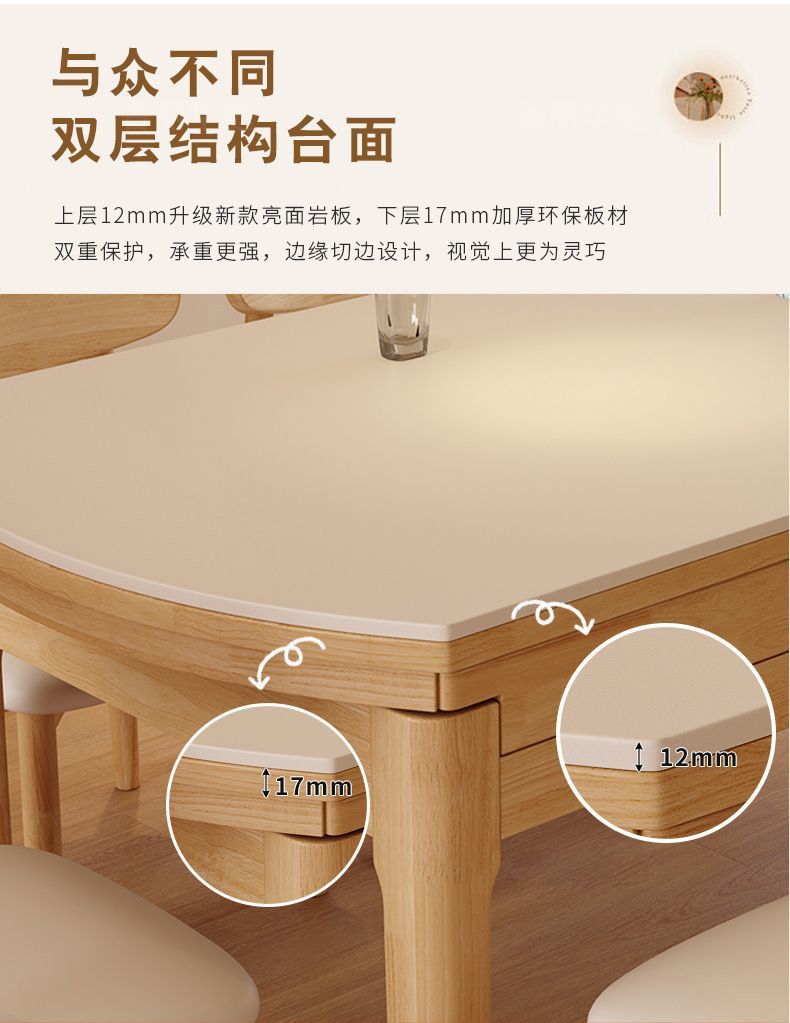 단단한 나무 바위 보드 식탁 및 의자 가정용 로그 색상 현대 간단한 작은 아파트 크림 스타일 광장 및 라운드 이중 목적 망원경 테이블스토어 가기