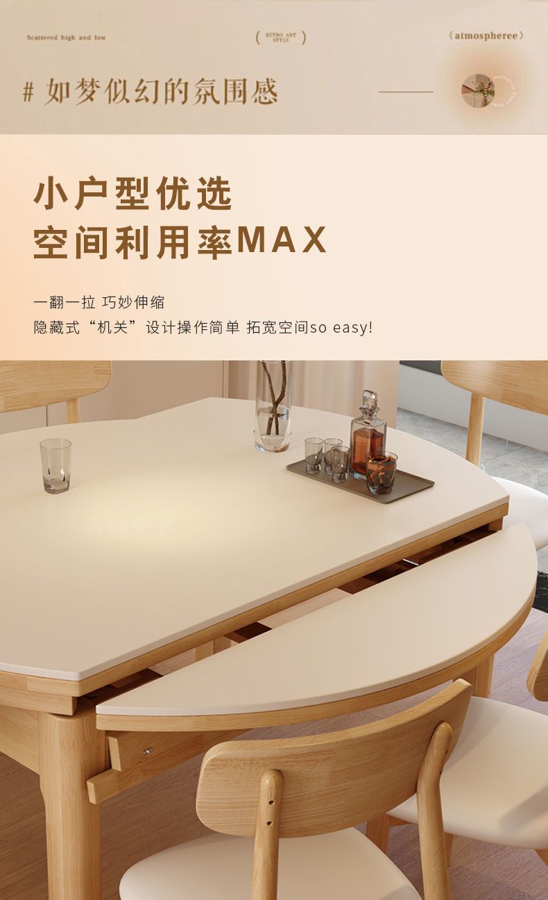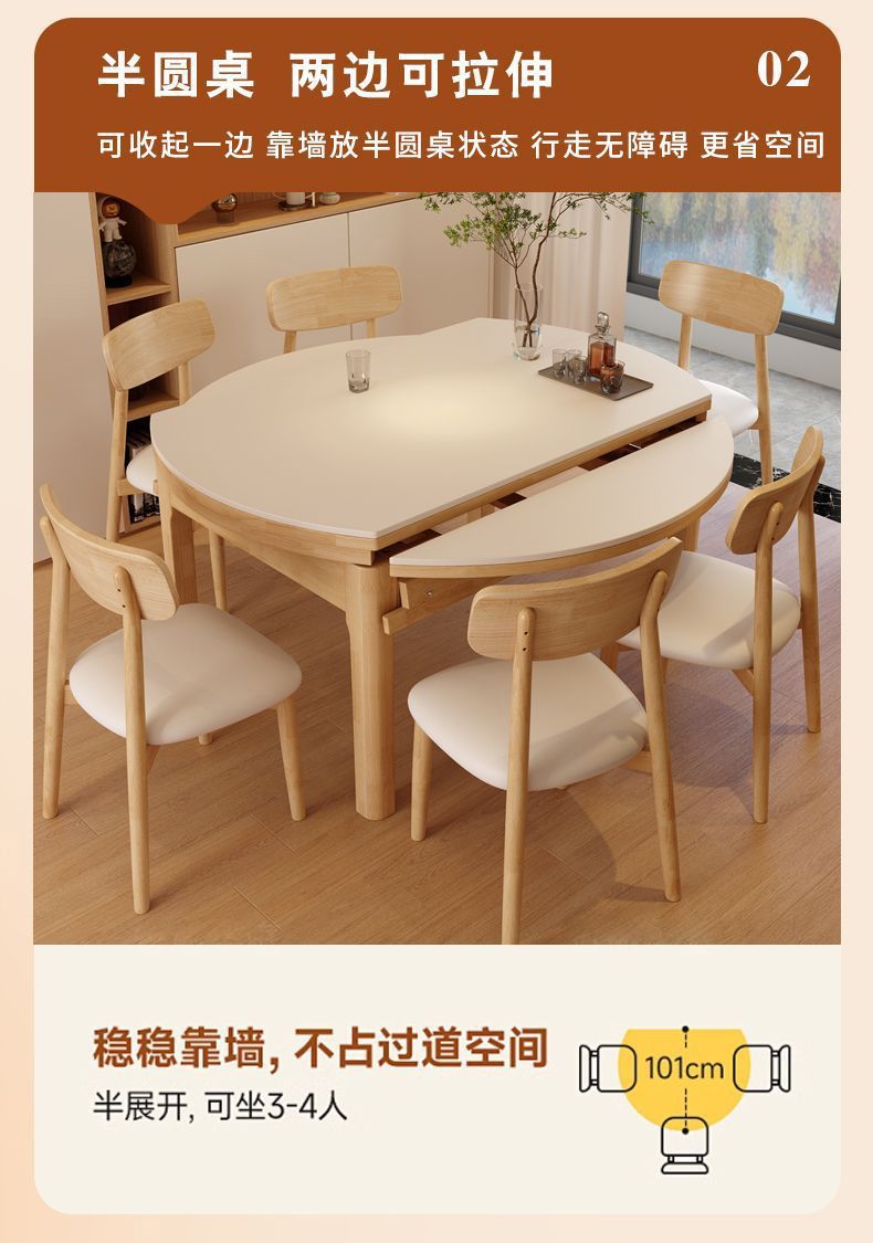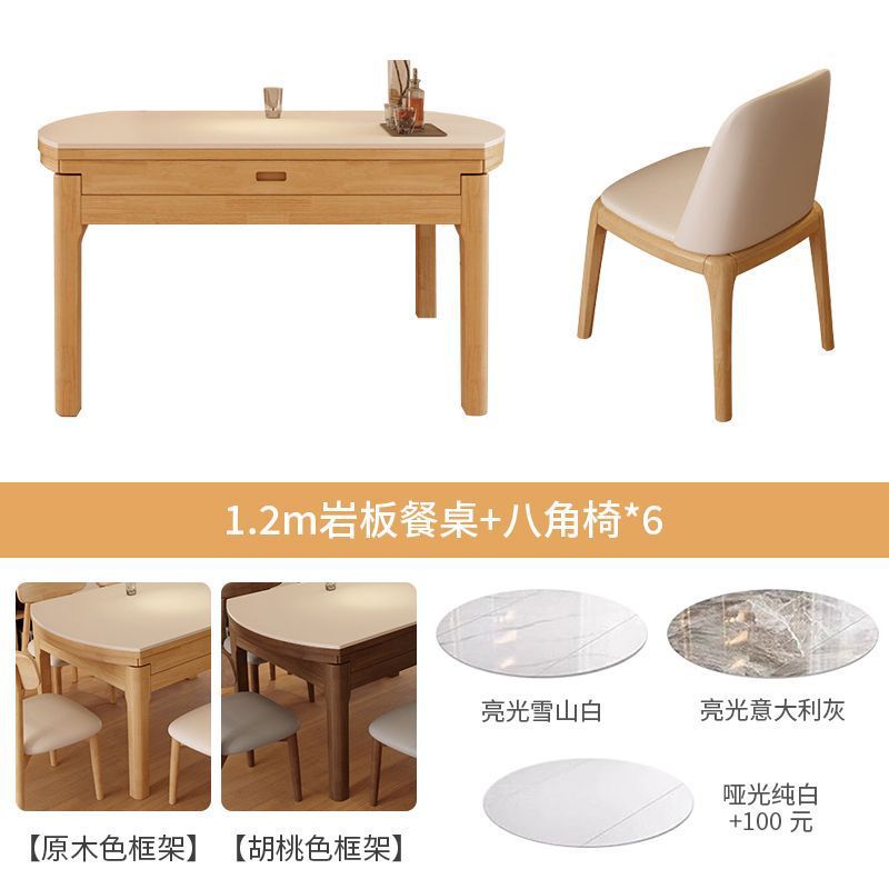 단단한 나무 바위 보드 식탁 및 의자 가정용 로그 색상 현대 간단한 작은 아파트 크림 스타일 광장 및 라운드 이중 목적 망원경 테이블