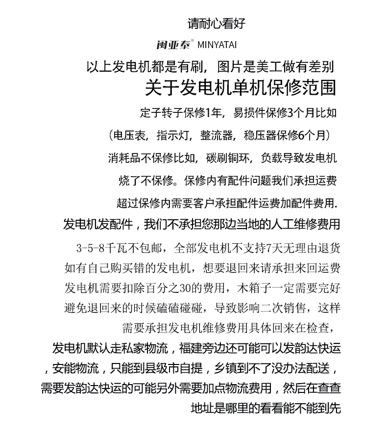 • 8kW 단상 220V + 나무 상자 포장 + 카본 브러쉬 4개