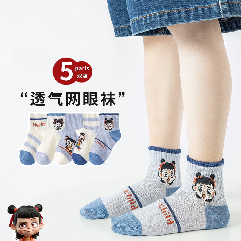어린이 양말 봄과 여름 얇은 메쉬 면 양말 짧은 양말 만화 소녀 소년 양말 봄과 가을면 양말
