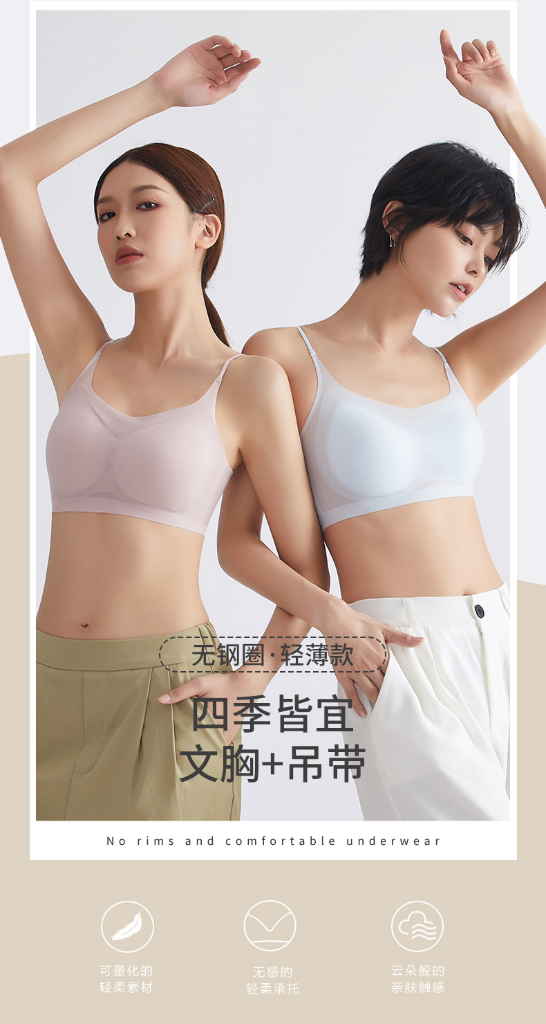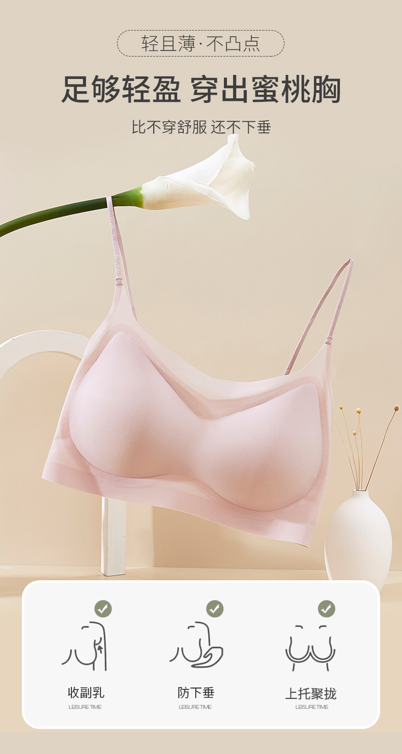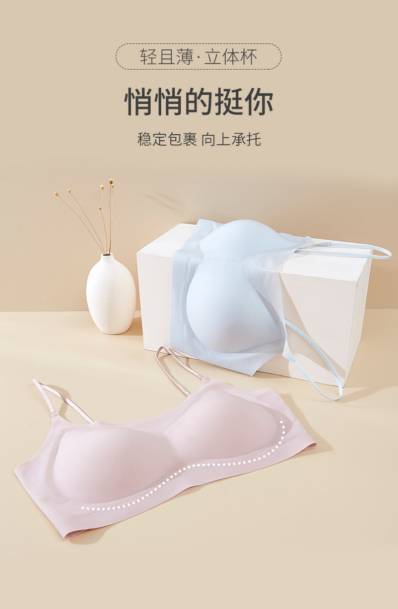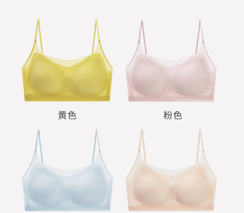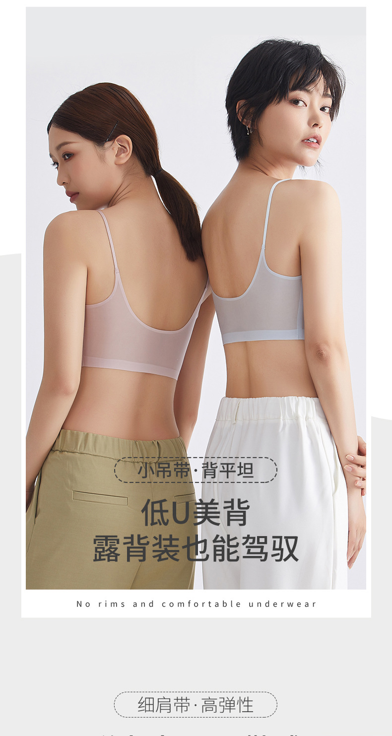 Traceless 울트라 얇은 쿨 아이스 실크 아름다운 조끼 스타일 속옷 여성의 여름 슬링 얇은 작은 가슴 푸시 업 브라 스틸 반지 없음스토어 가기