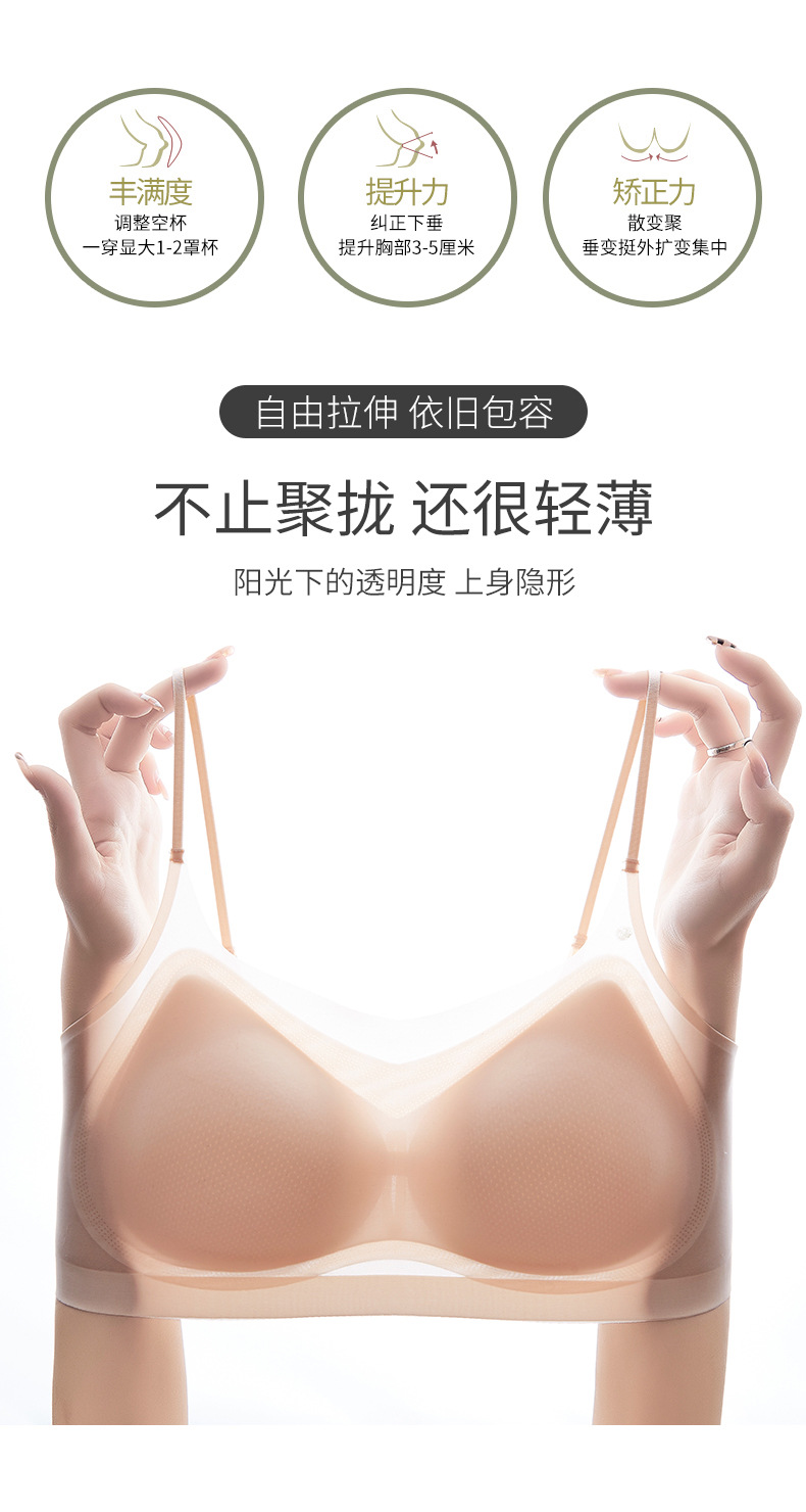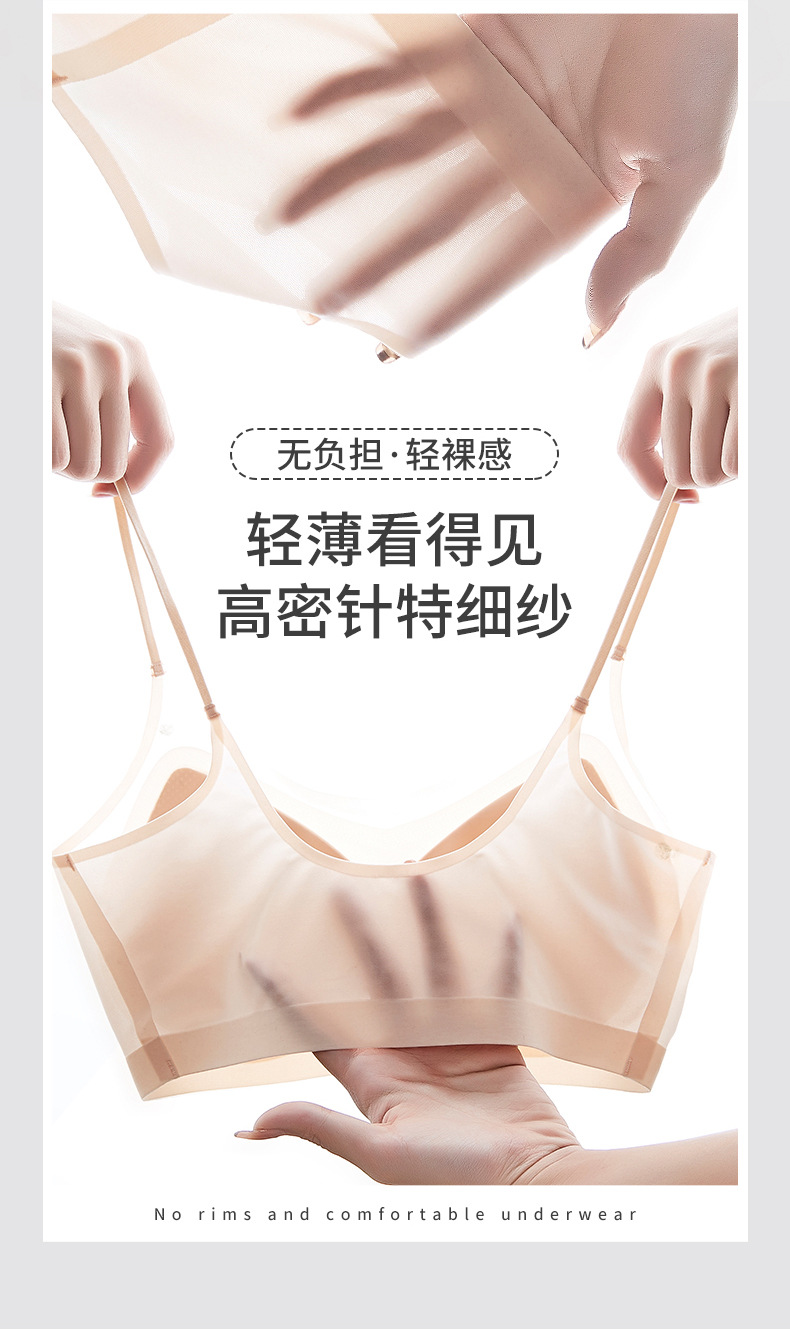 Traceless 울트라 얇은 쿨 아이스 실크 아름다운 조끼 스타일 속옷 여성의 여름 슬링 얇은 작은 가슴 푸시 업 브라 스틸 반지 없음