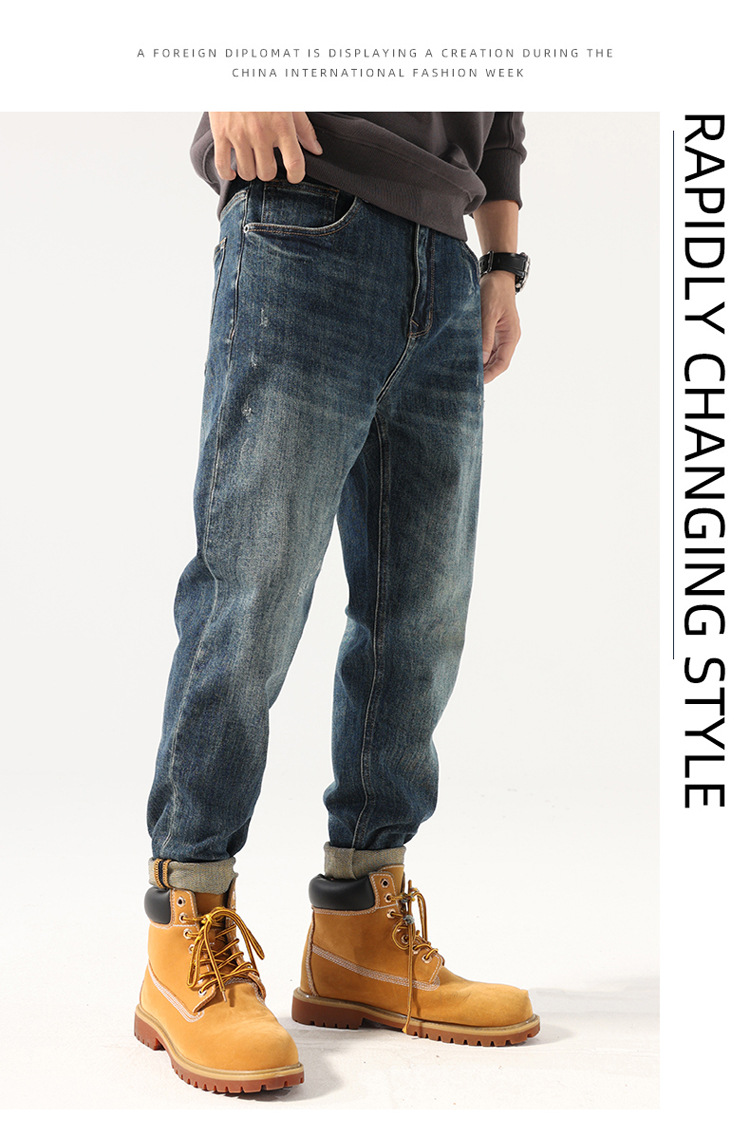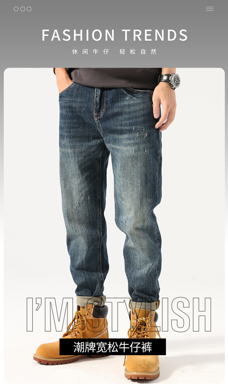 아메리칸 스타일 레트로 청바지 남성용 루즈 스트레이트 플러스 사이즈 하렘 바지 트렌디 브랜드 트렌디 한 캐주얼 롱 팬츠스토어 가기