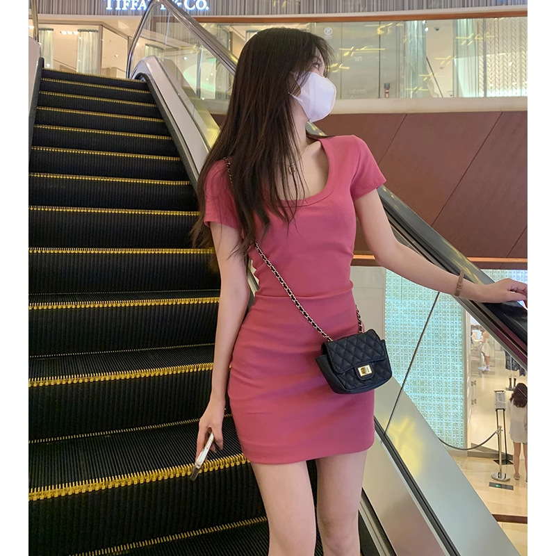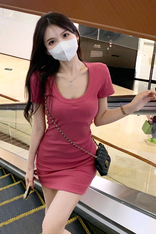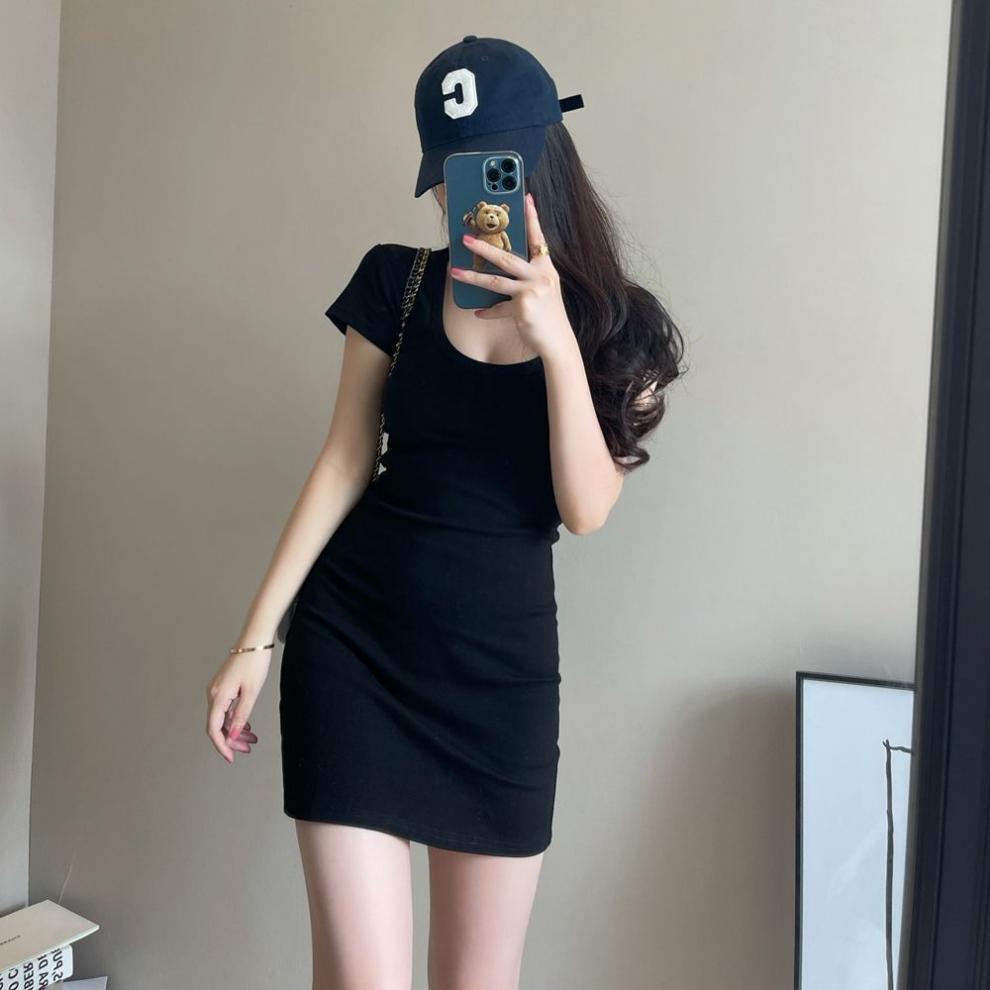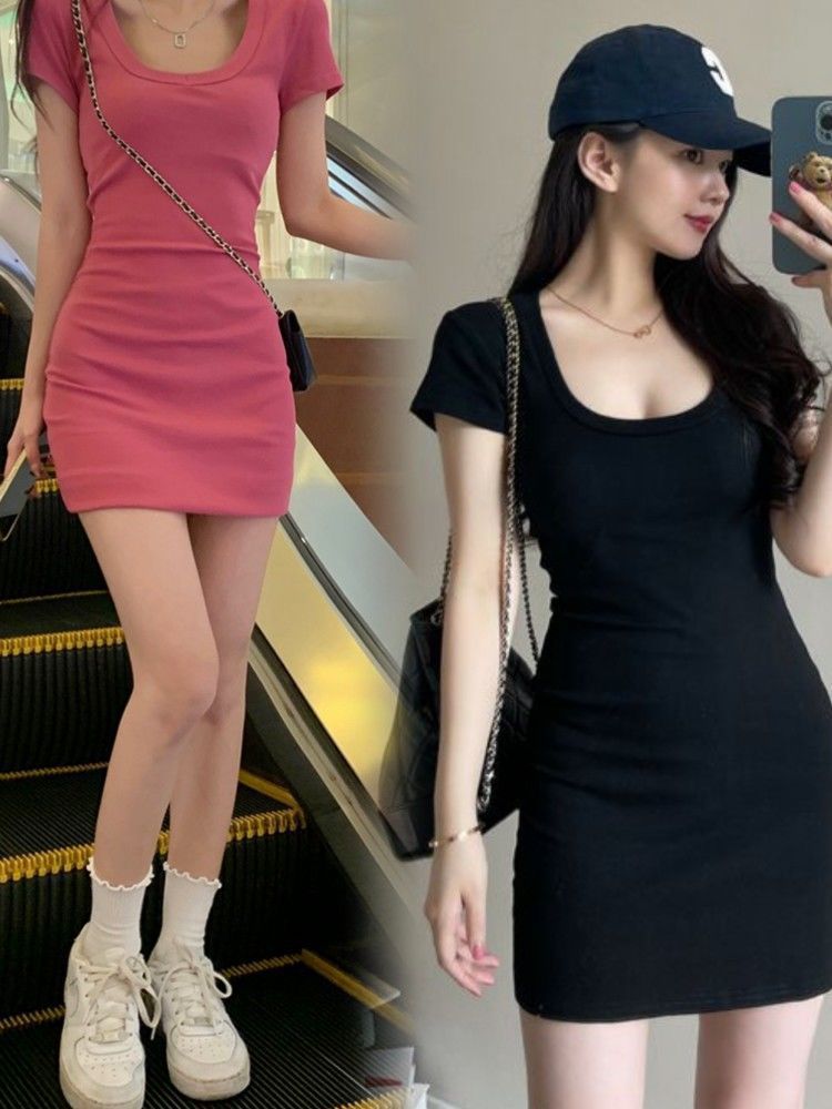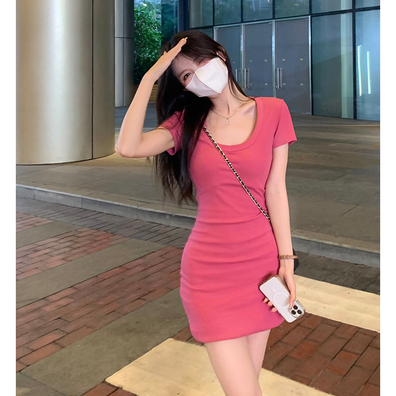 인터넷 축하 같은 스타일의 크루 넥 긴 셔츠와 스커트 여성의 여름 슬림 핏 슬림 타이트 허리 슬림 핏 힙합 랩 스커트 원피스스토어 가기