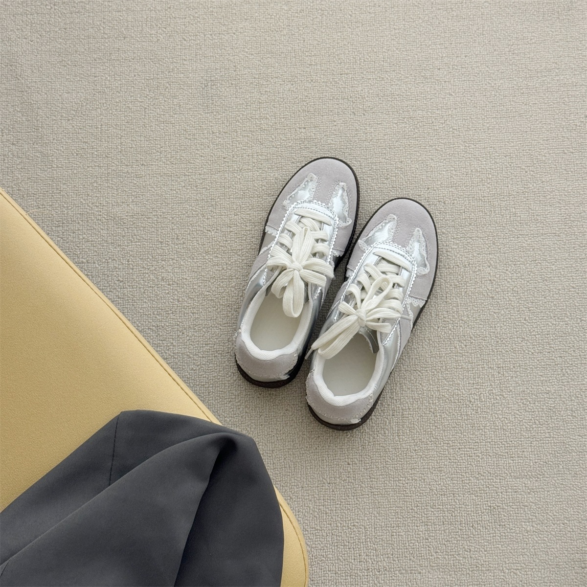 이제 한국 동대문 구매 25 봄 신음 블로거 캐주얼 실버 레이스 업 쇠고기 힘줄 밑창 독일 훈련 신발 신발