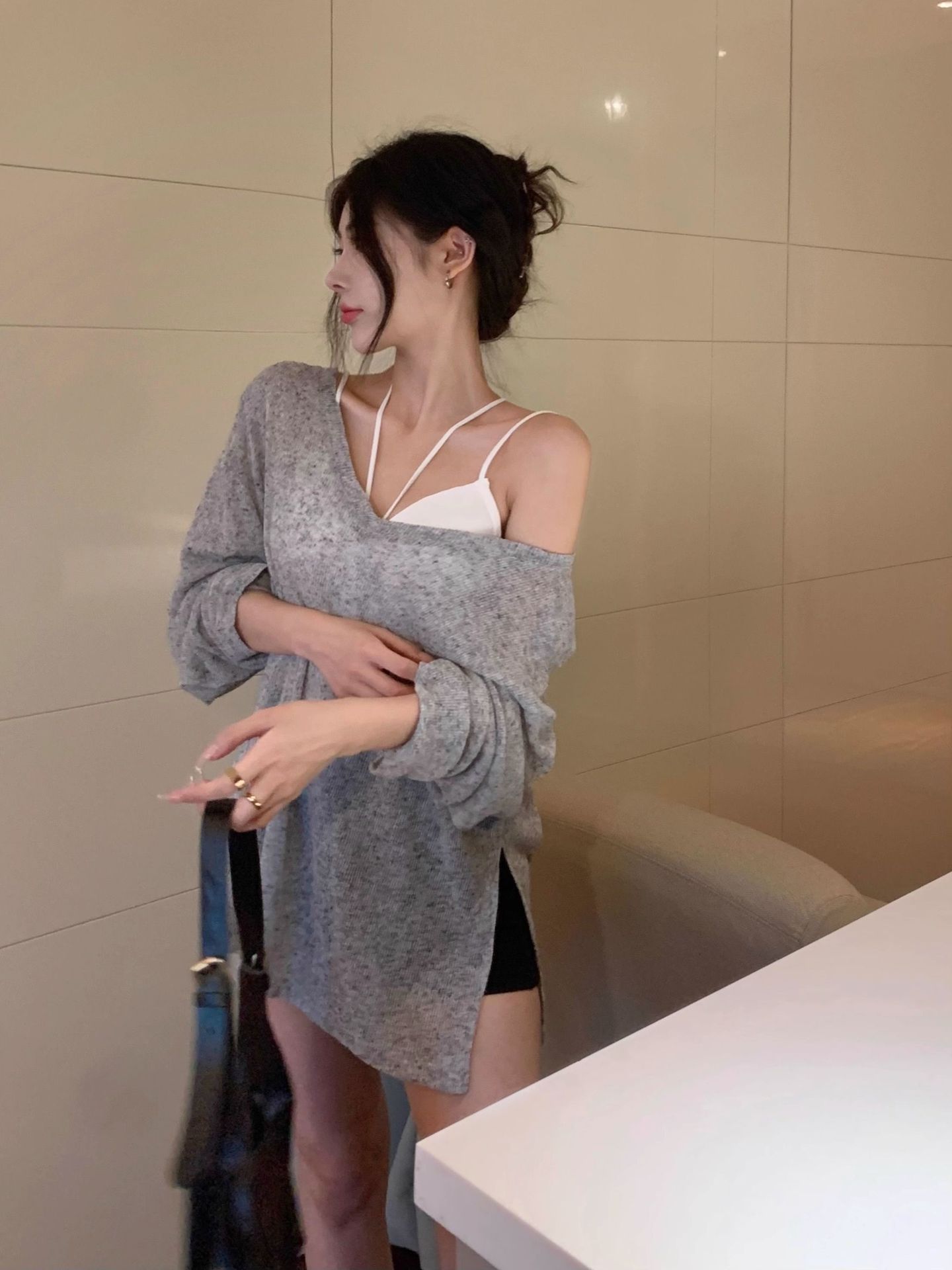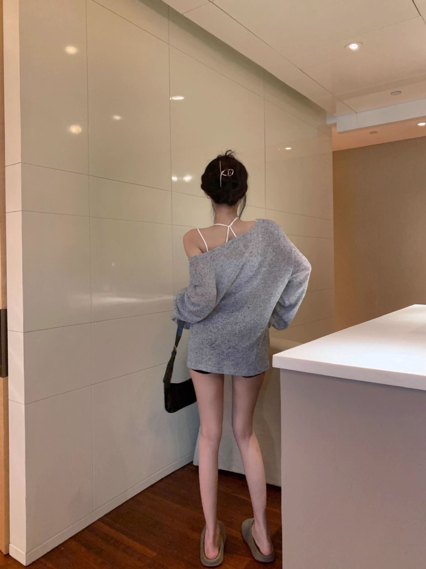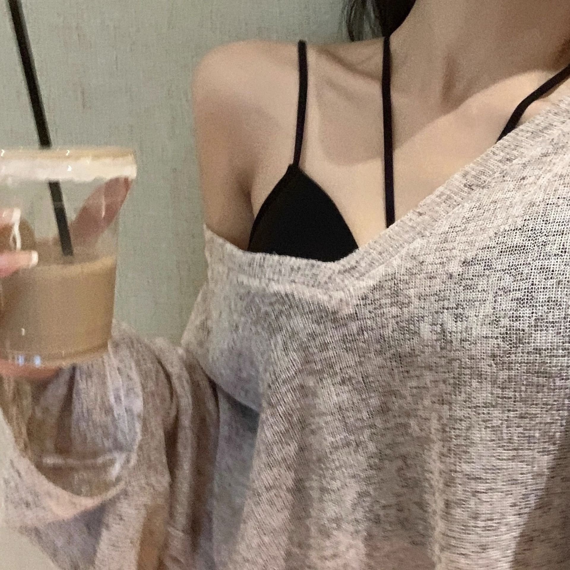 2025 여름 섹시한 긴팔 티셔츠 여성용 목 스트랩 얇은 디자인 감각 느슨한 태양 보호 블라우스 탑스토어 가기