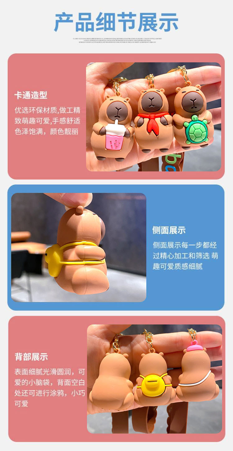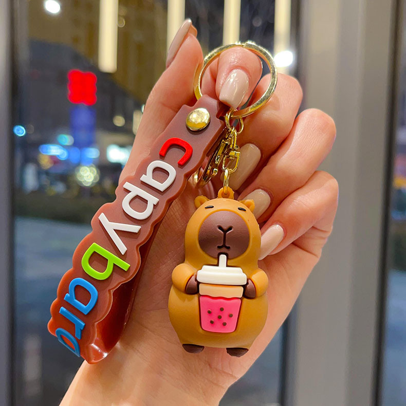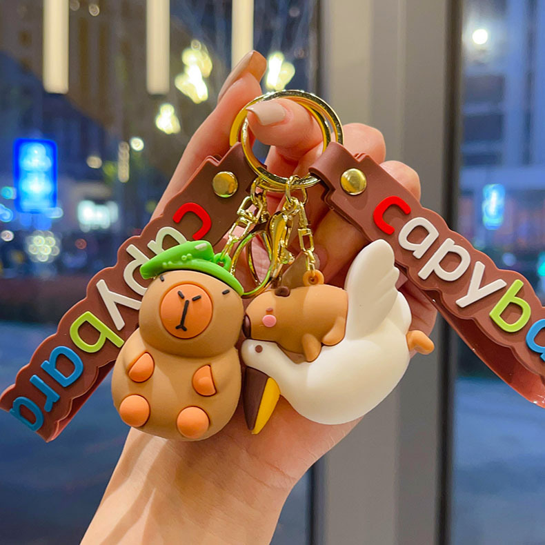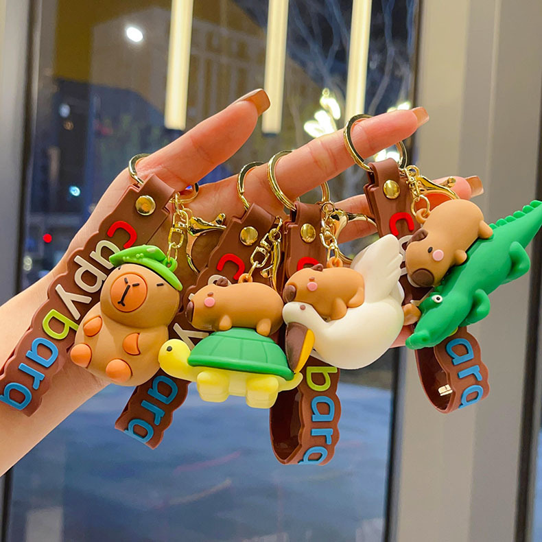 새로운 카피발라 열쇠고리 수달 캐릭터 펜던트 가방 장식 자동차 열쇠고리 작은 선물 도매스토어 가기