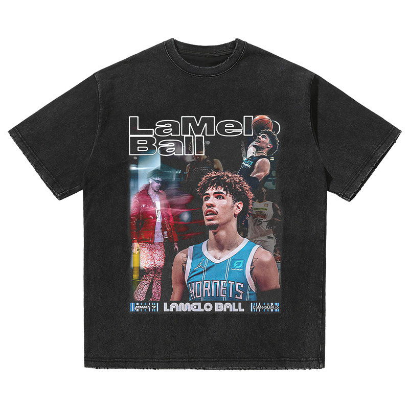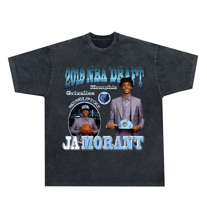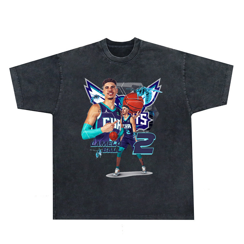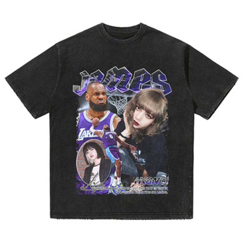 LAZADA 대외 무역 복고풍 워시 올드 빈티지 프린트 티셔츠 스트리트 퓨어 코튼 반팔 남성 크로스 보더 도매