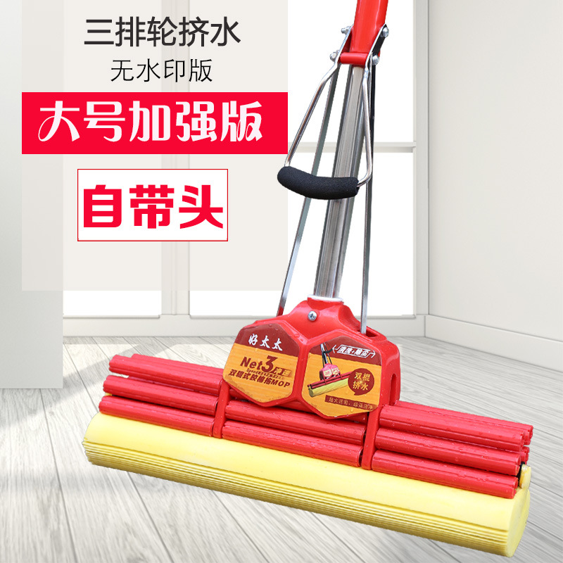 좋은 아내 스폰지 걸레 머리 물 흡수성 걸레 대형 가정용 물 짜기 스테인레스 스틸 고무 면 걸레 보물