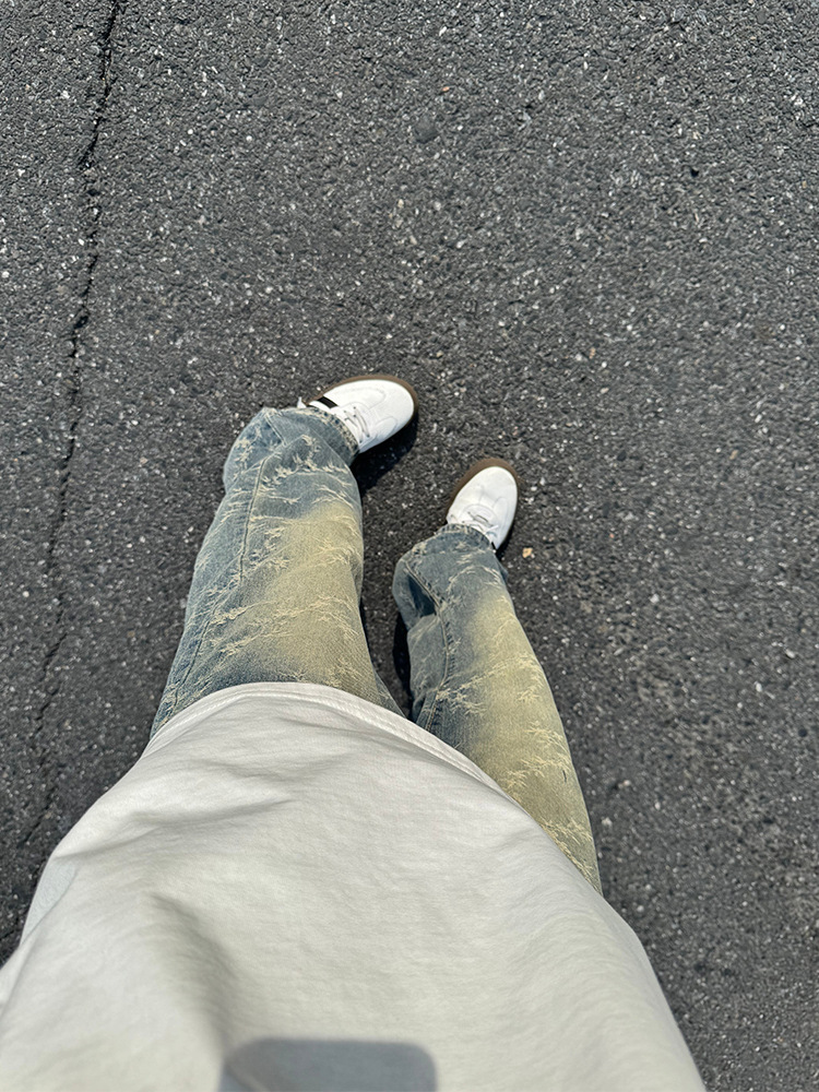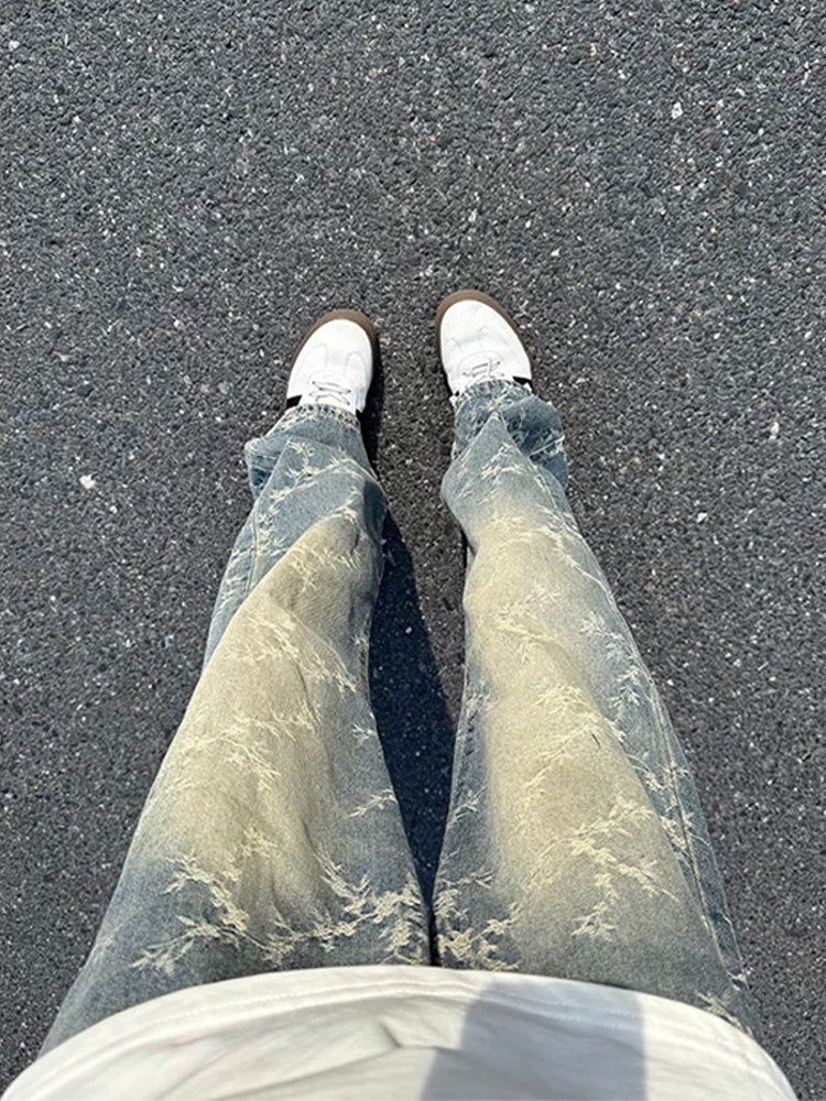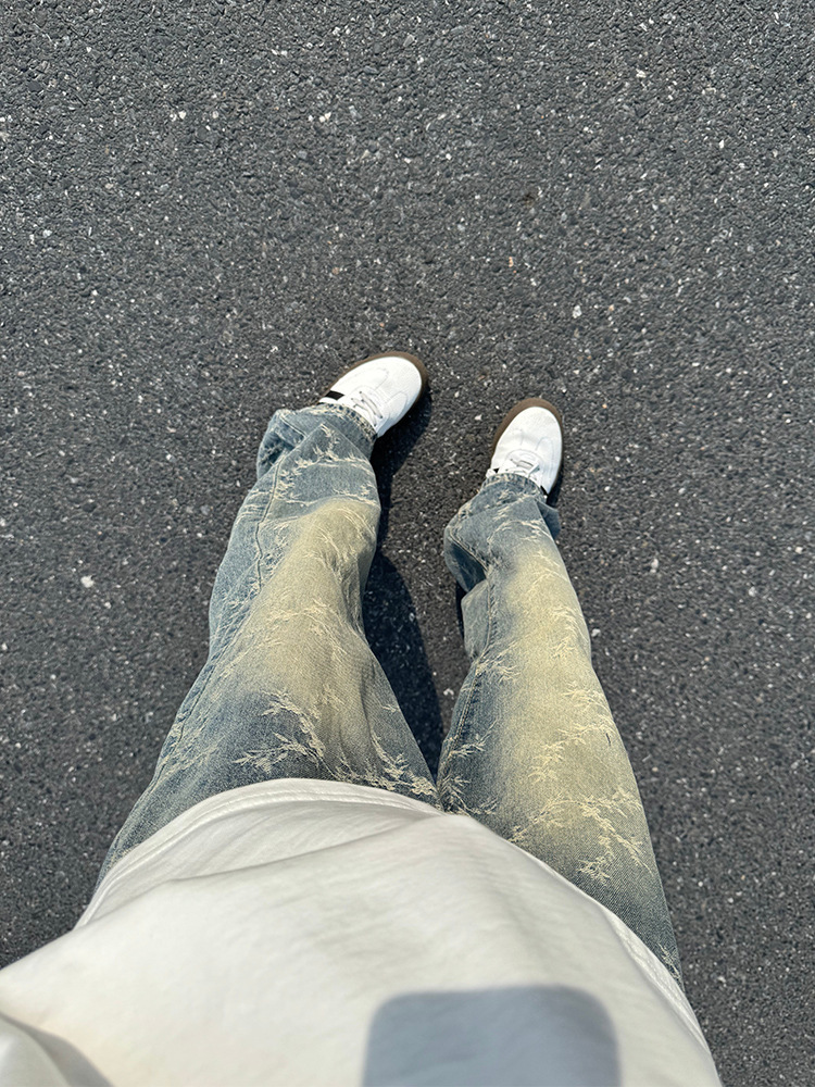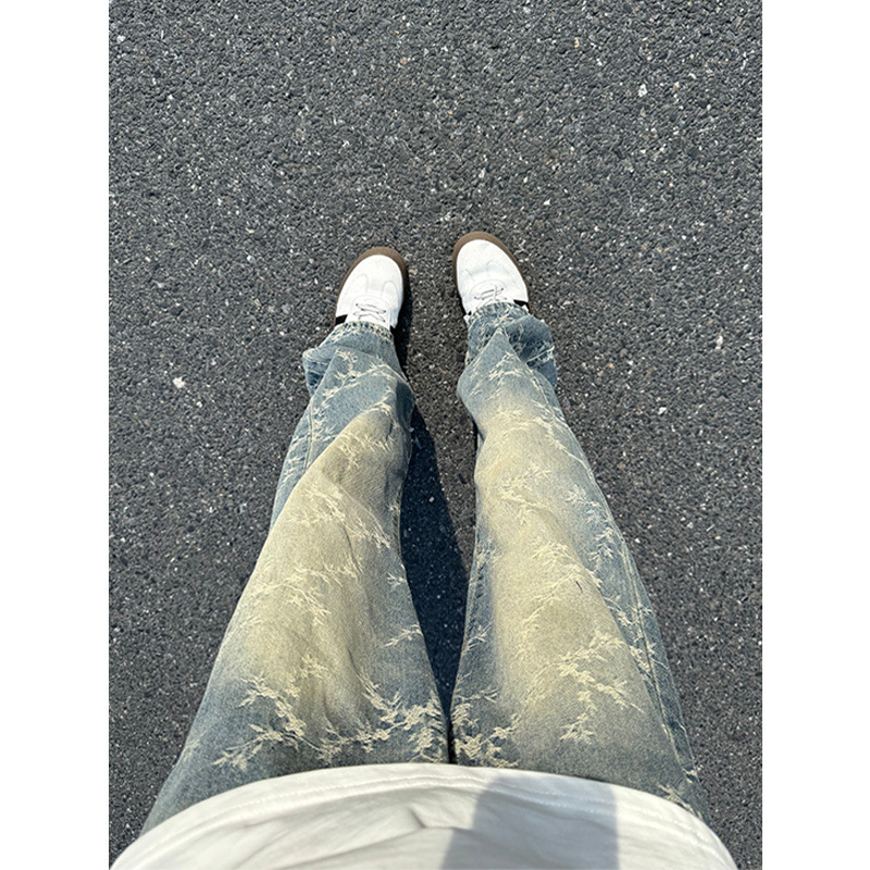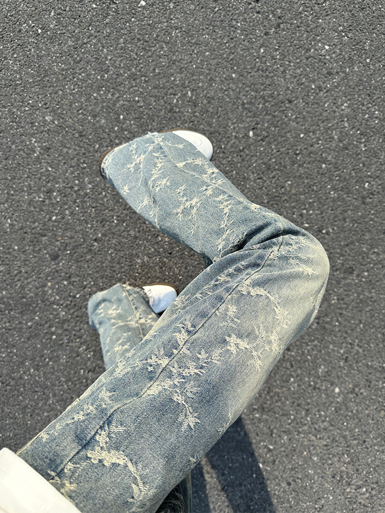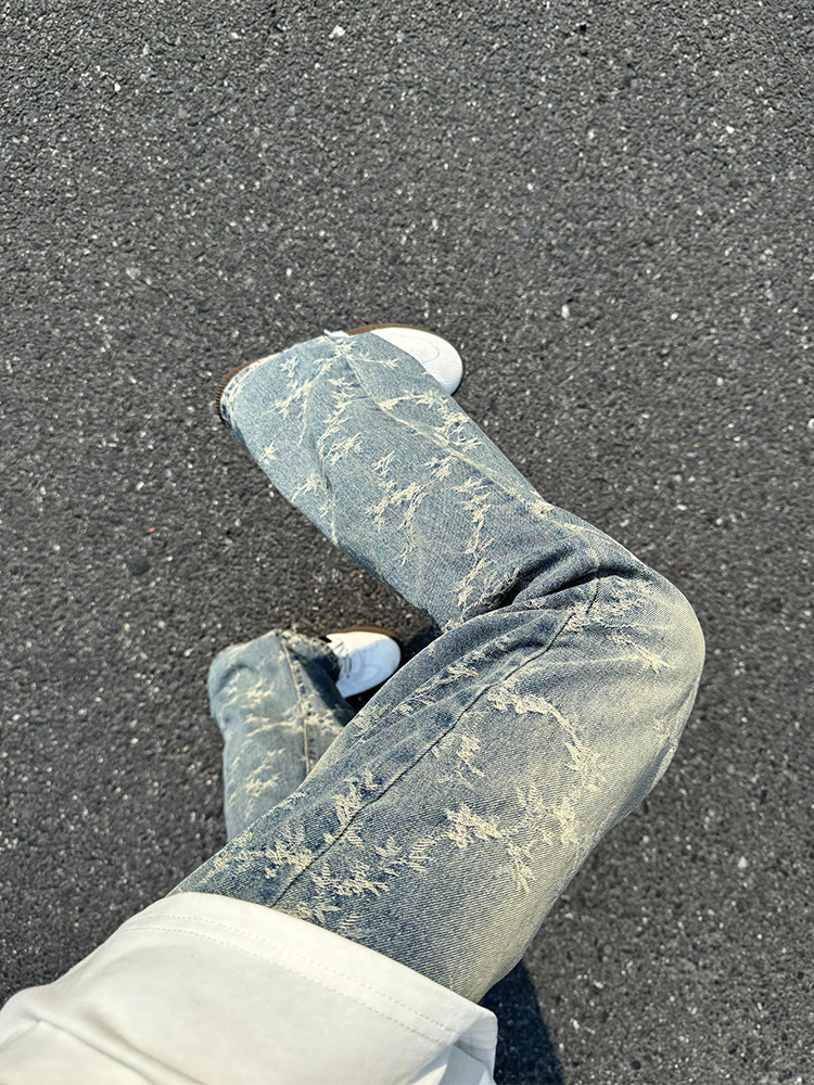 클린 핏 Briar Jacquard 청바지 아메리칸 스타일 하이 스트리트 바이브 바지 남성용 스트레이트 마이크로 마체 테 바지스토어 가기