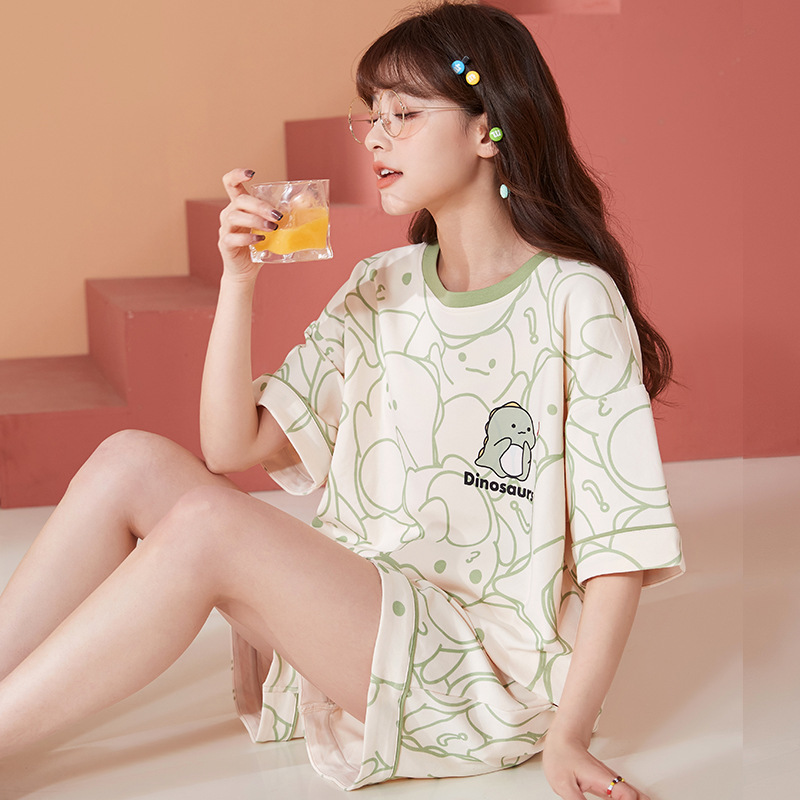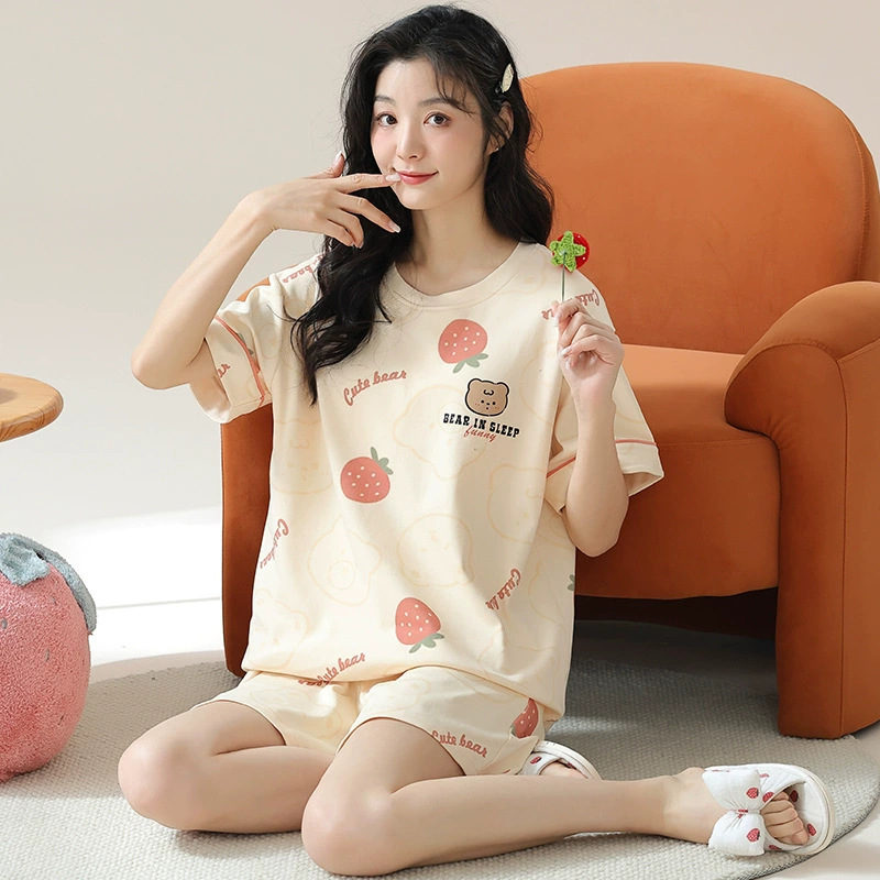 여성용 신상 여름 잠옷, 여름 반팔 반바지, 귀여운 만화 여성 홈웨어 세트, 인터넷 연예인 인기 스타일스토어 가기