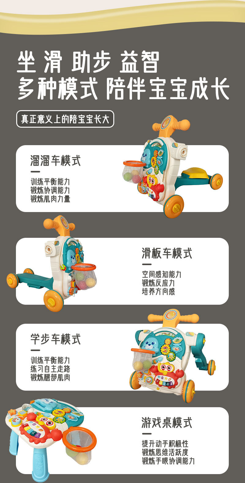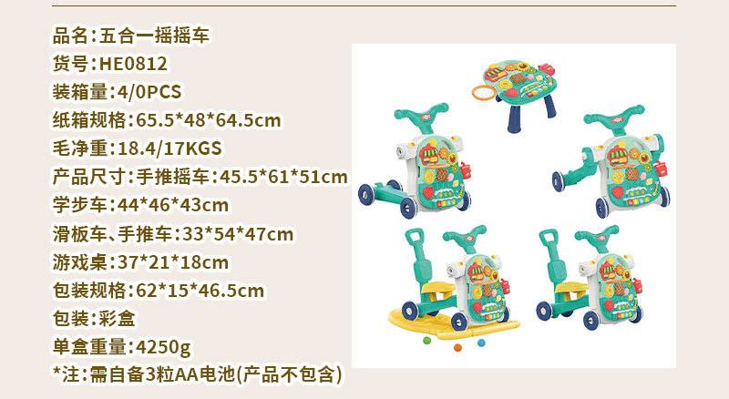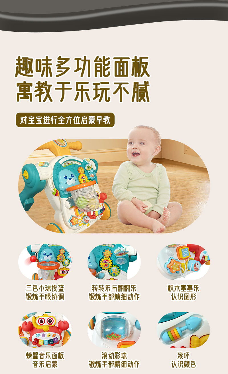 Huang Er 유아 5 대 1 안티 롤오버 워커 다기능 피트니스 랙 스쿠터 조기 교육 장난감 게임 테이블스토어 가기