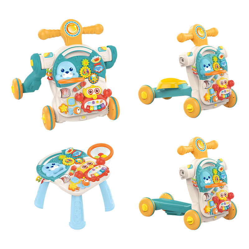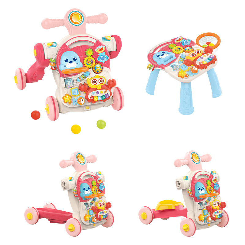 Huang Er 유아 5 대 1 안티 롤오버 워커 다기능 피트니스 랙 스쿠터 조기 교육 장난감 게임 테이블