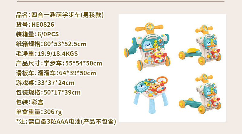 • HE0826 4-in-1 재미있고 귀여운 보행기(남아용)