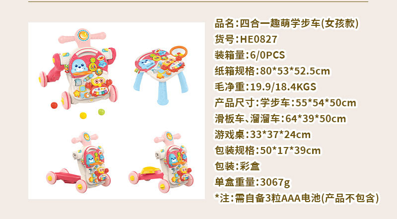 • HE0827 4-in-1 재미있고 귀여운 보행기(여아모델)