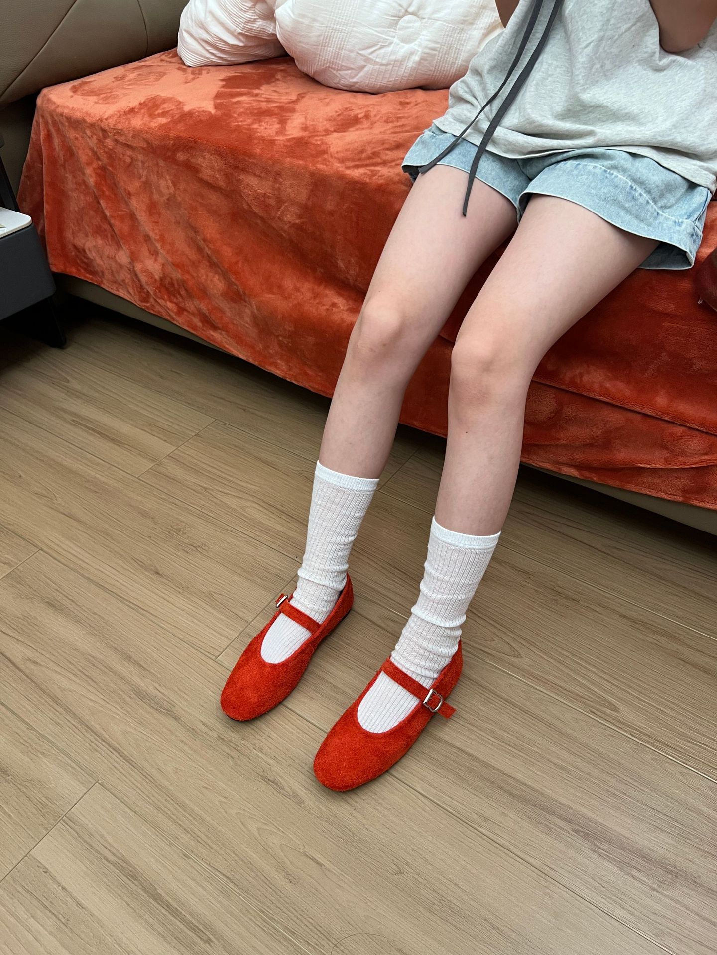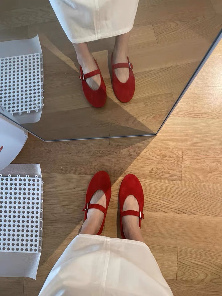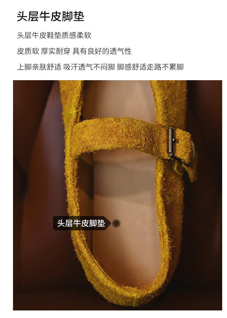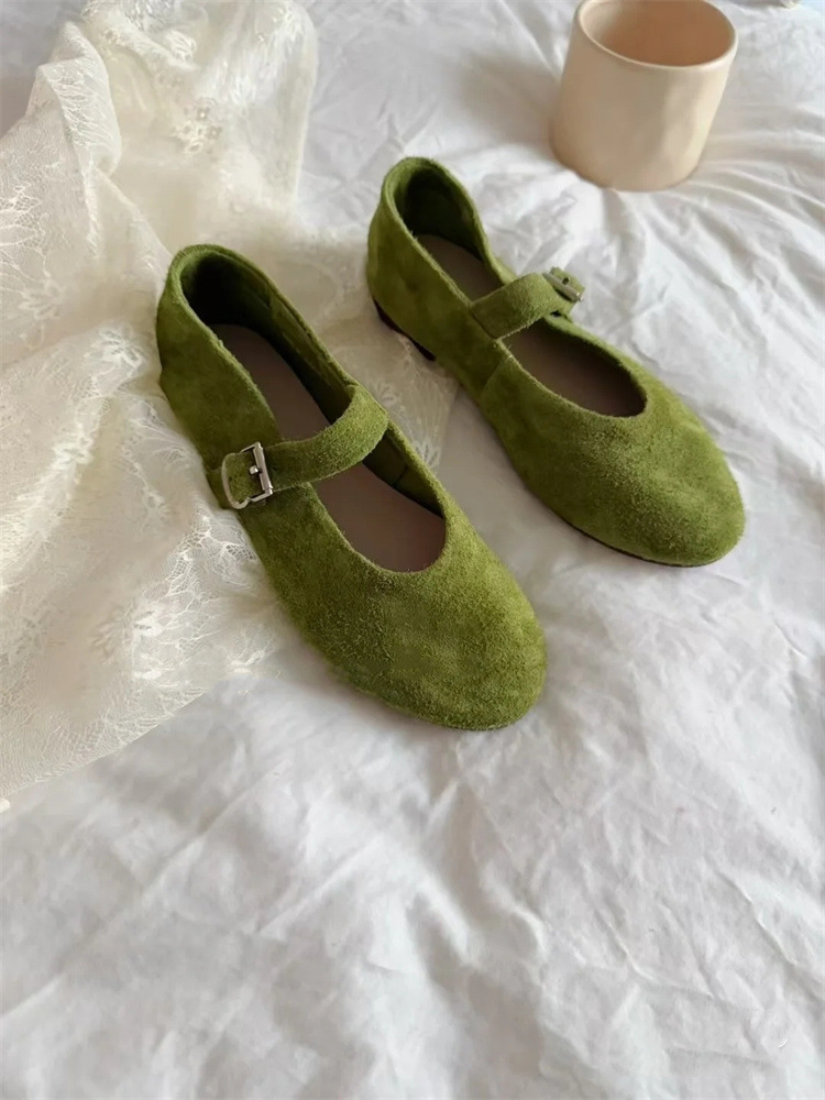 재고 있음 ~ 여성용 1층 소가죽 메리제인 발레슈즈, 플랫솔, 레트로 원라인 버클, 기모 가죽 펌프스
