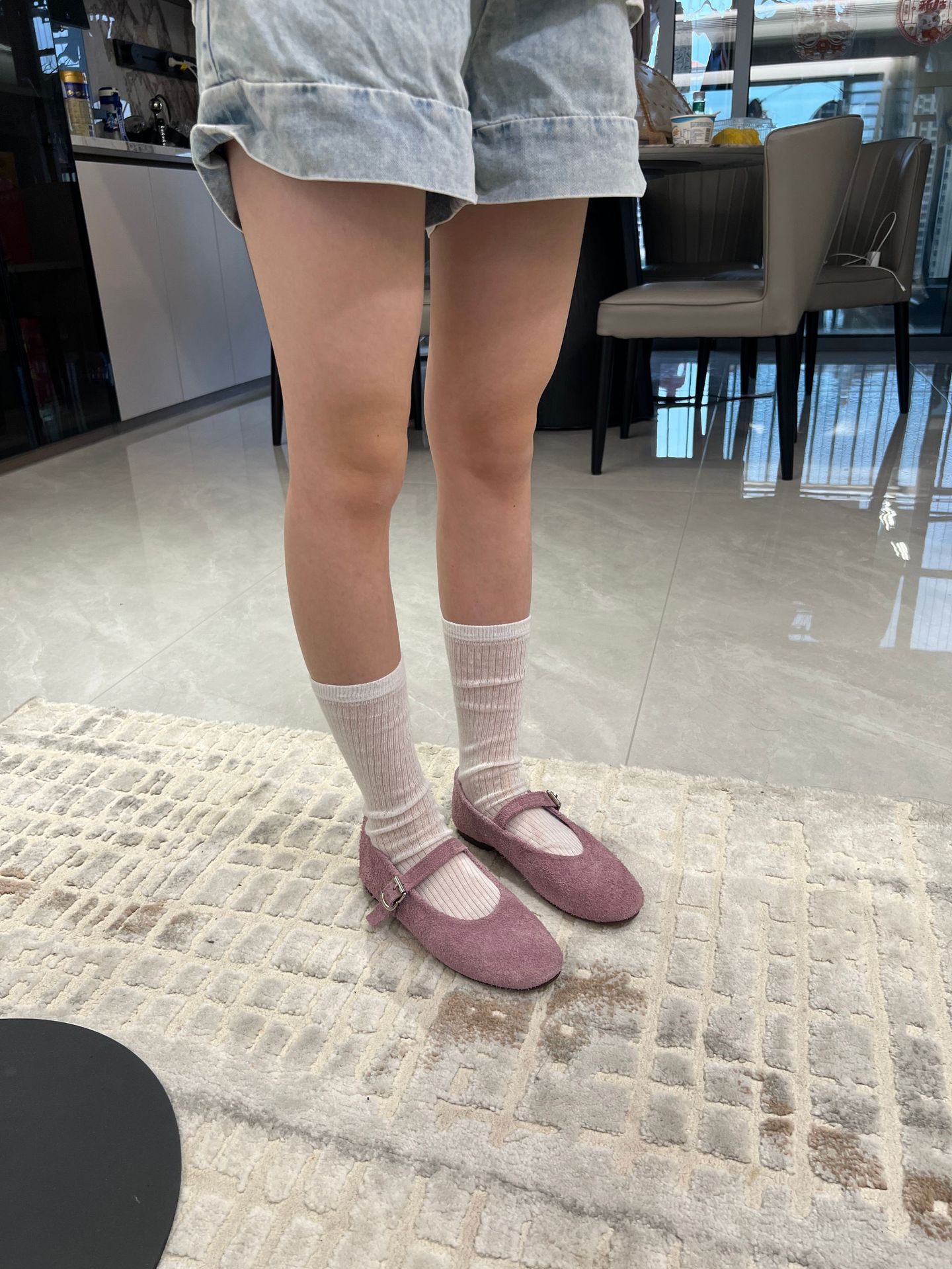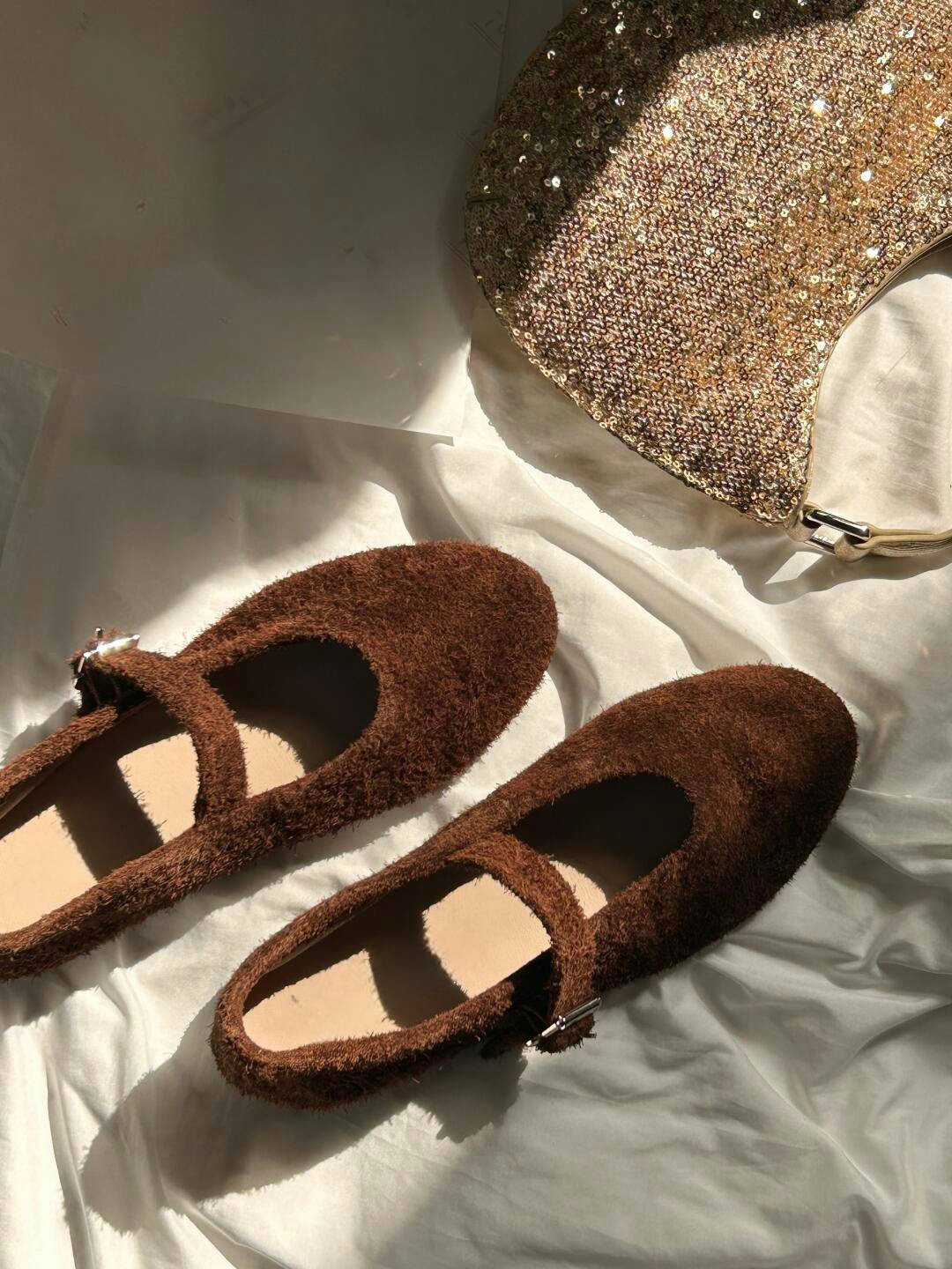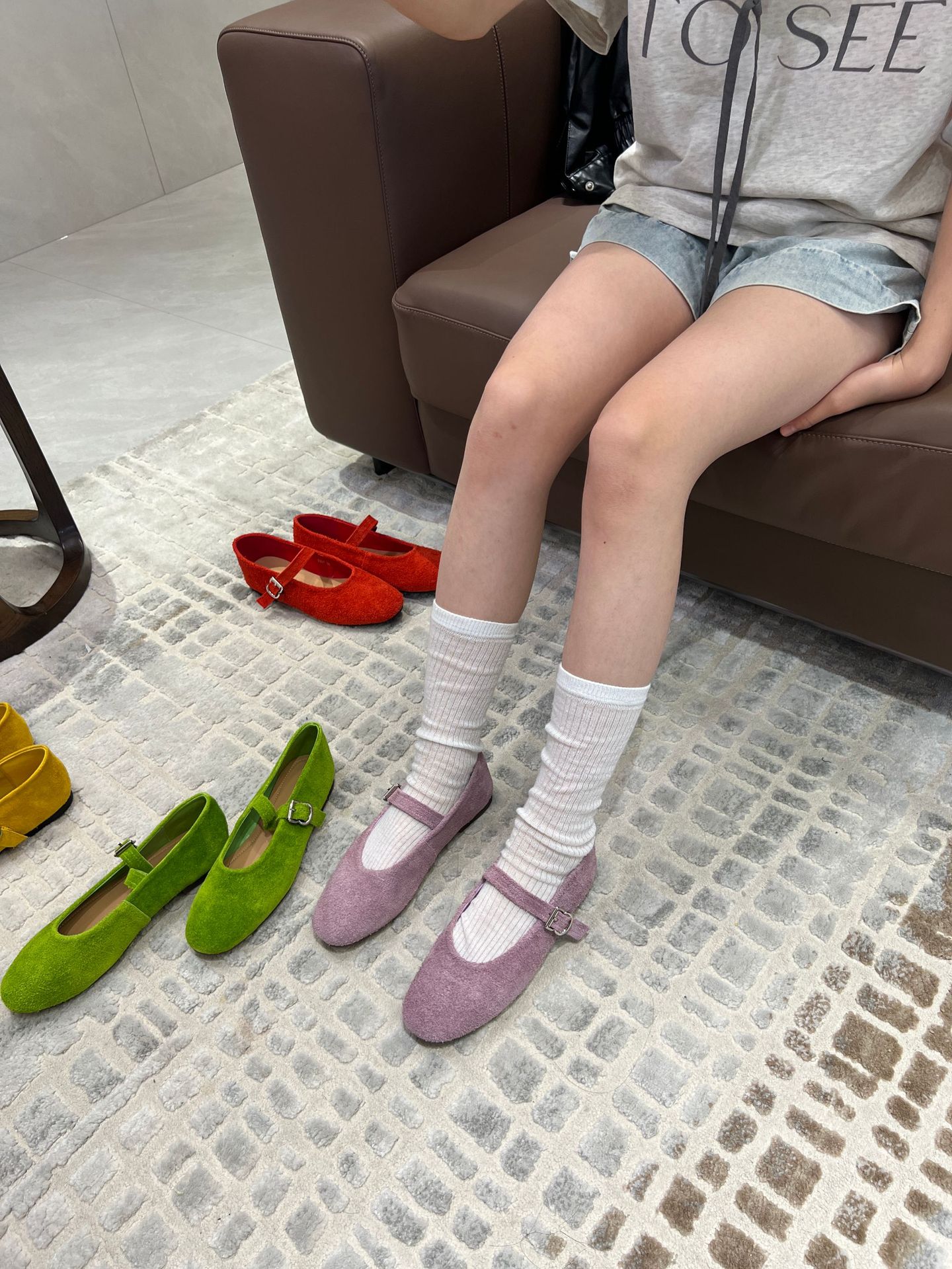 재고 있음 ~ 여성용 1층 소가죽 메리제인 발레슈즈, 플랫솔, 레트로 원라인 버클, 기모 가죽 펌프스