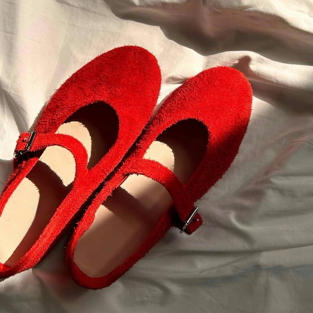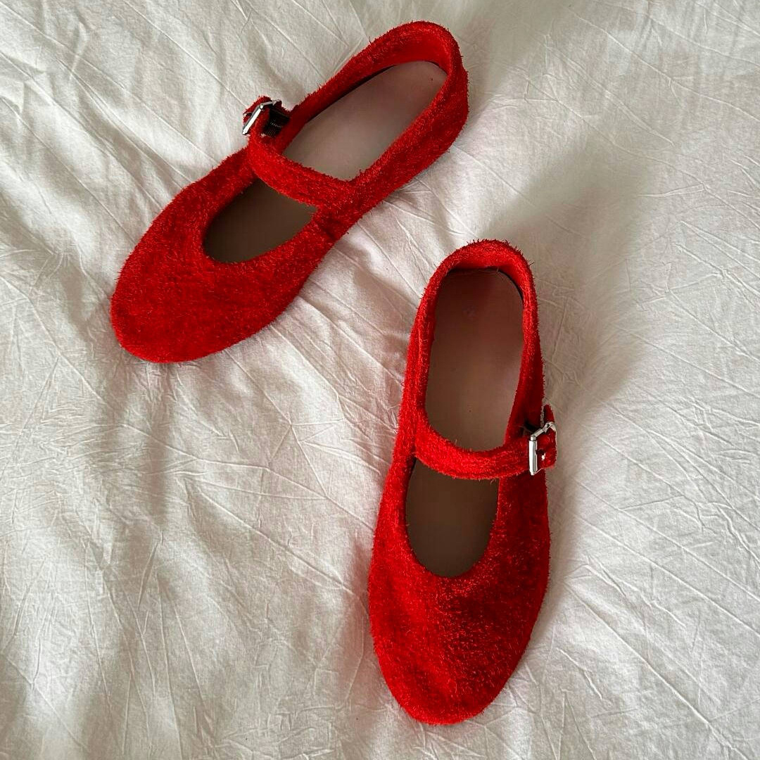 재고 있음 ~ 여성용 1층 소가죽 메리제인 발레슈즈, 플랫솔, 레트로 원라인 버클, 기모 가죽 펌프스스토어 가기