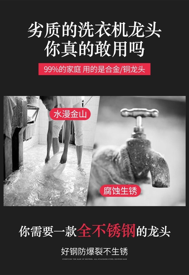 304 스테인레스 스틸 고온 및 냉간 수도꼭지 세탁기 범용 4 점 가정용 걸레 수영장 빠른 오픈 수도꼭지
