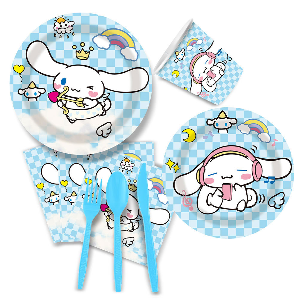 Yugui 개 Parchia 개 만화 생일 파티 장식 일회용 종이 트레이 종이 컵 종이 수건 풍선