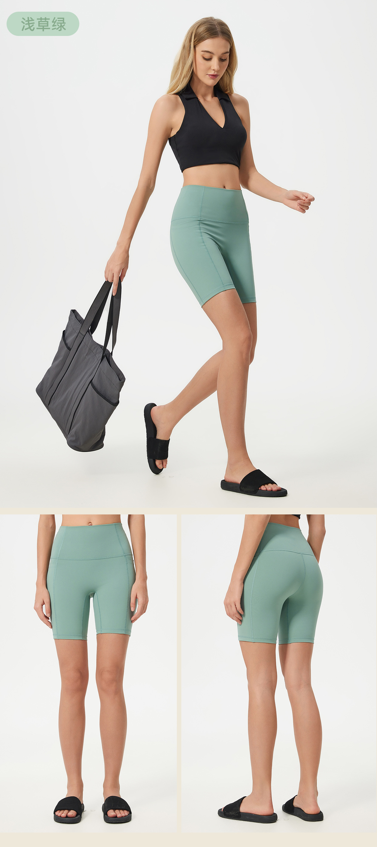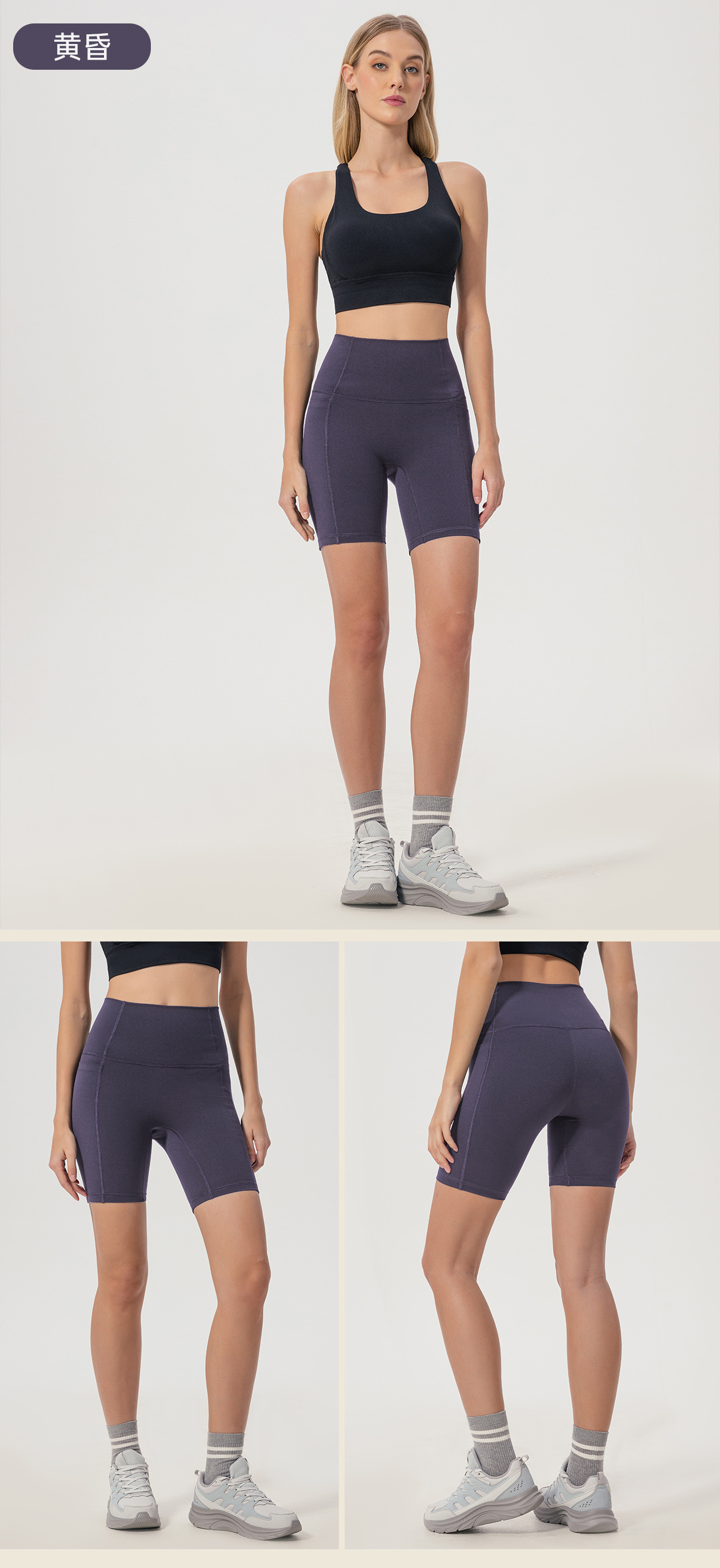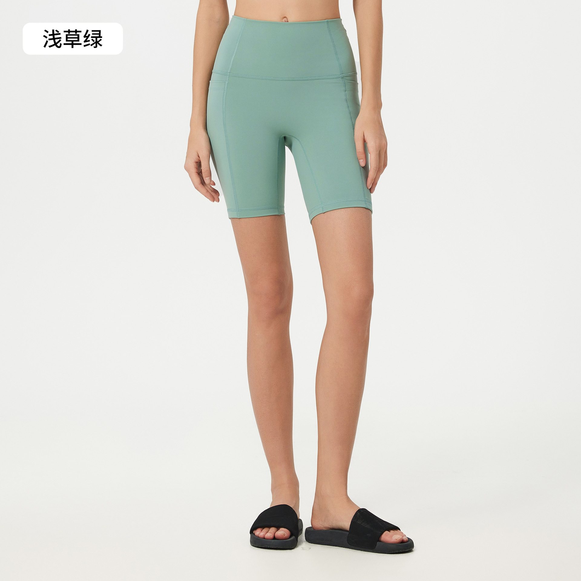 불황 라인 사이드 포켓 스포츠 반바지 여성 여름 높은 허리 엉덩이 꽉 감수성 피트니스 요가 반바지 D25035