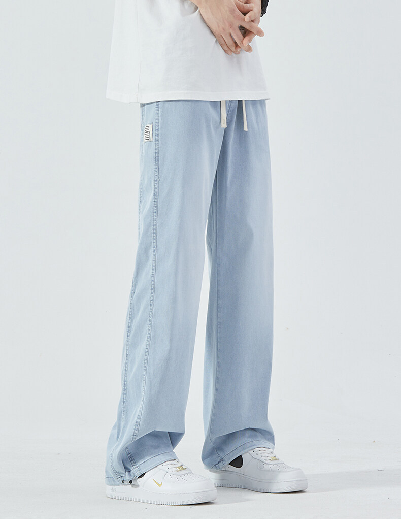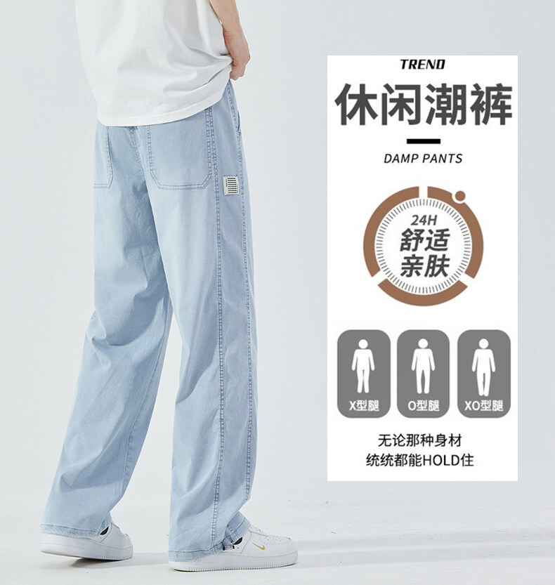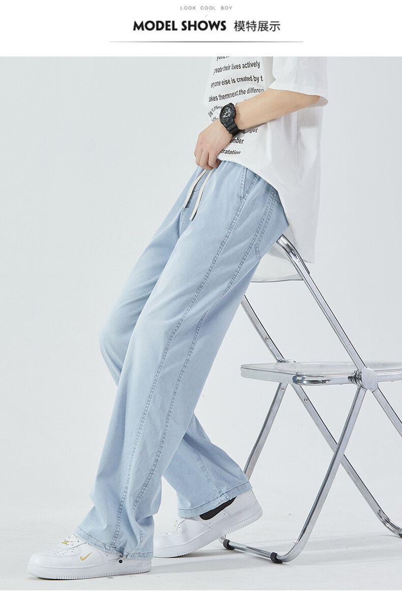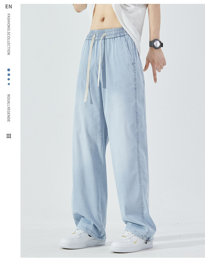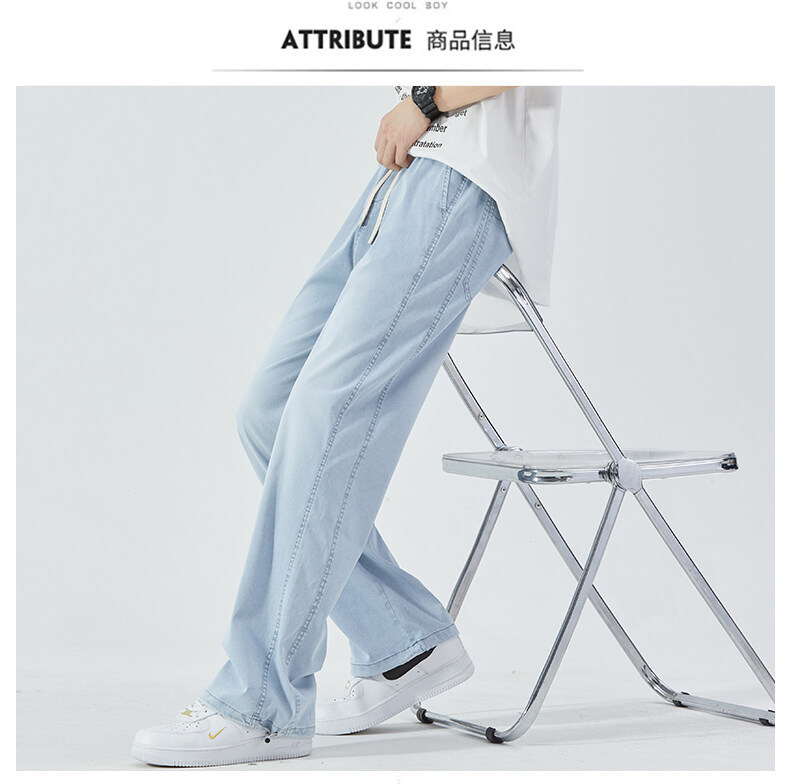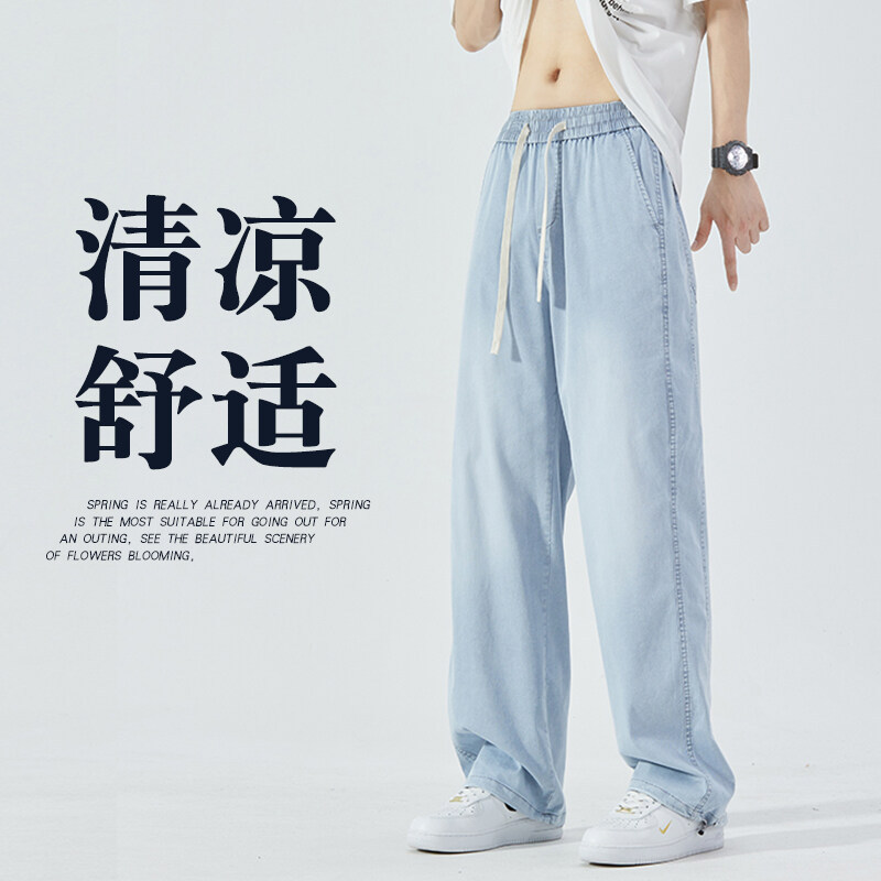여름 아이스 센스 청바지 남자의 느슨한 얇은 스트레이트 고급 아이스 실크 바지 약간 넓은 캐주얼 바지스토어 가기