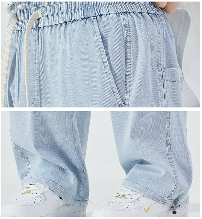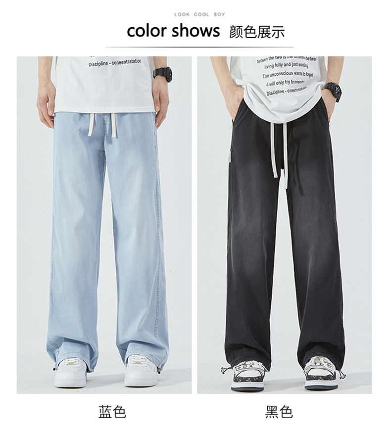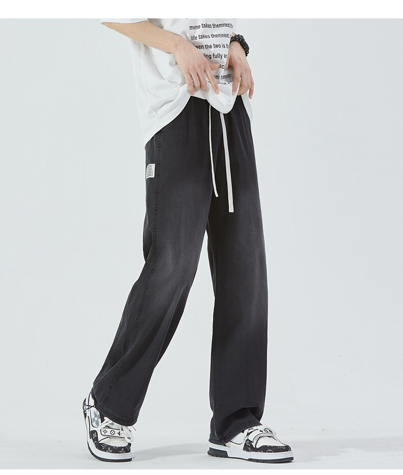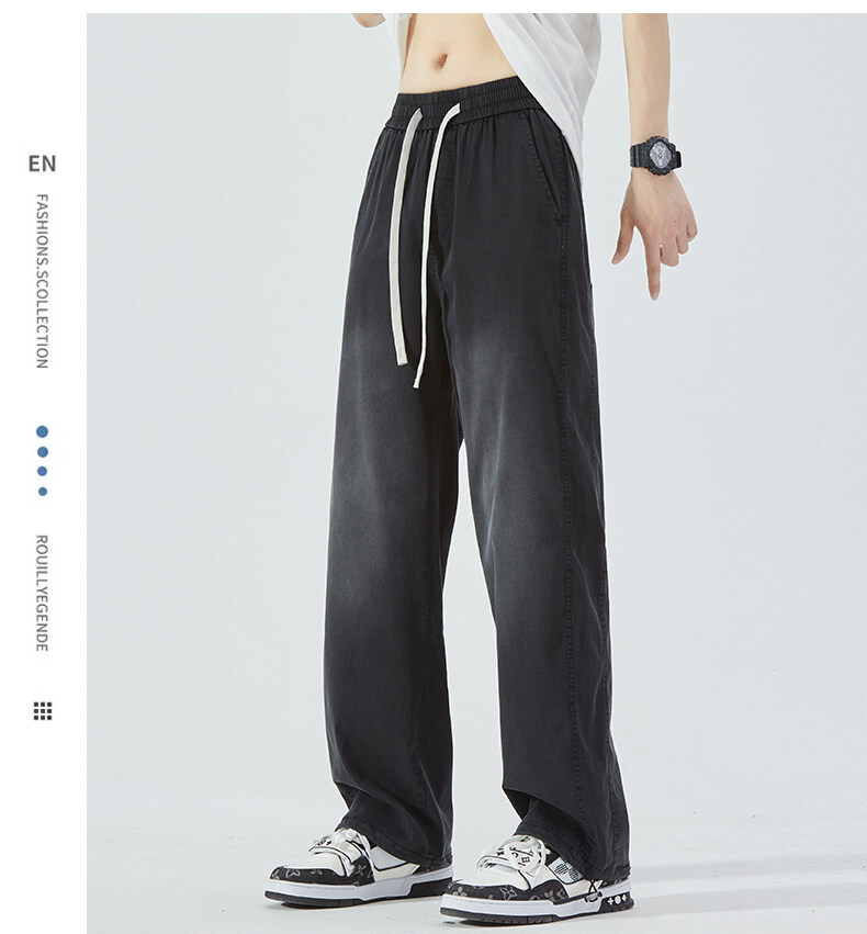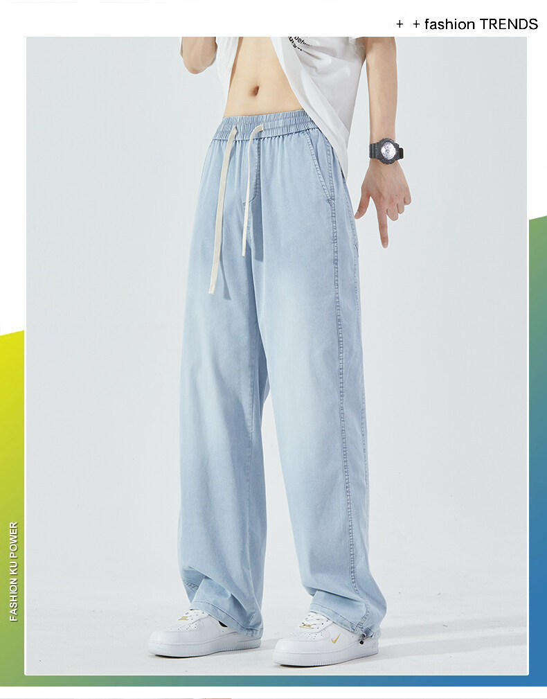 여름 아이스 센스 청바지 남자의 느슨한 얇은 스트레이트 고급 아이스 실크 바지 약간 넓은 캐주얼 바지스토어 가기