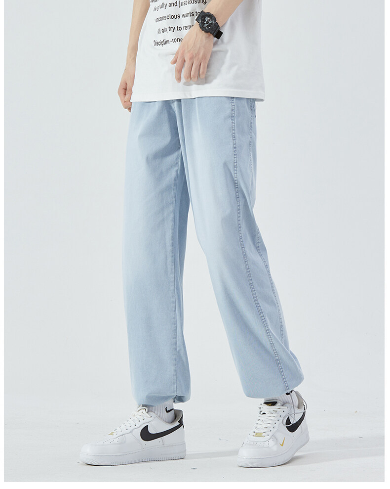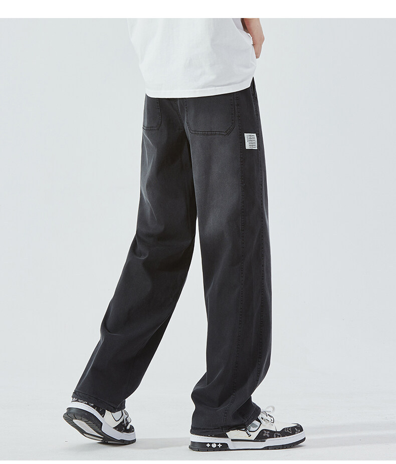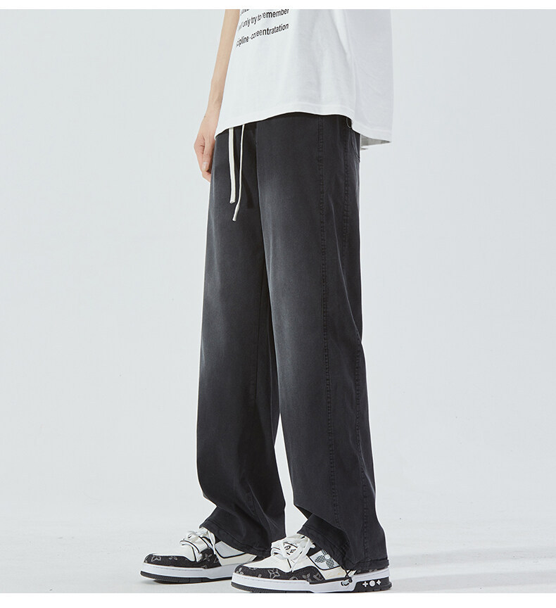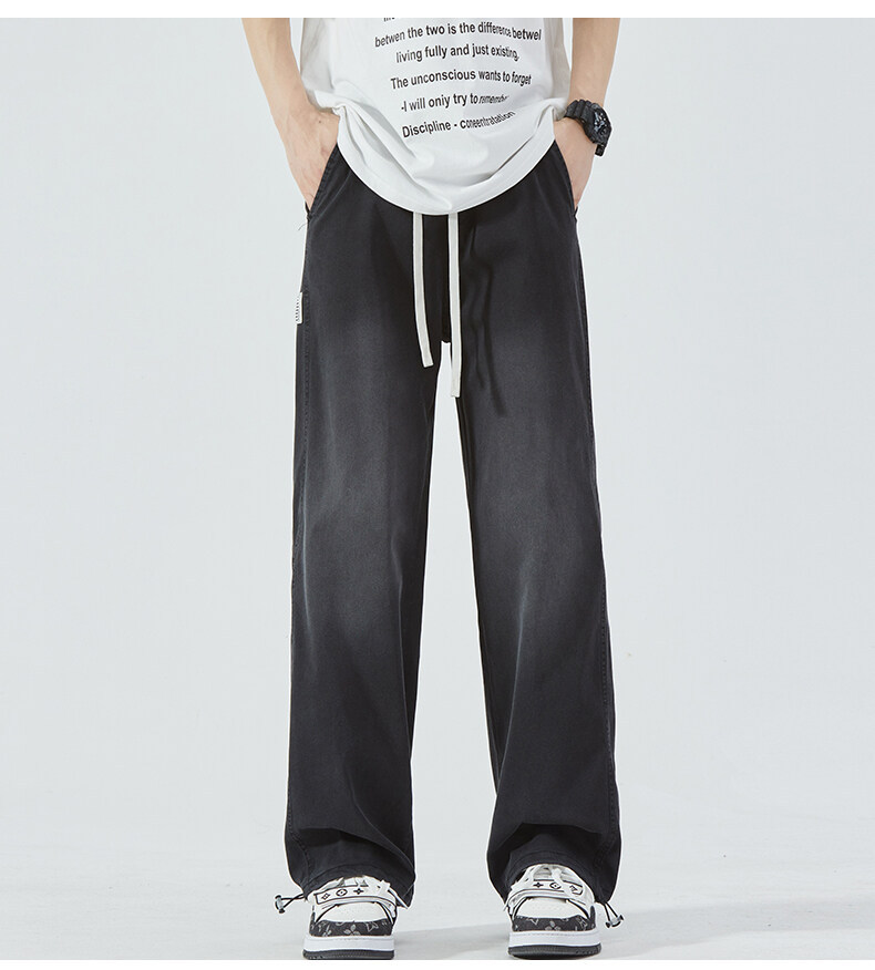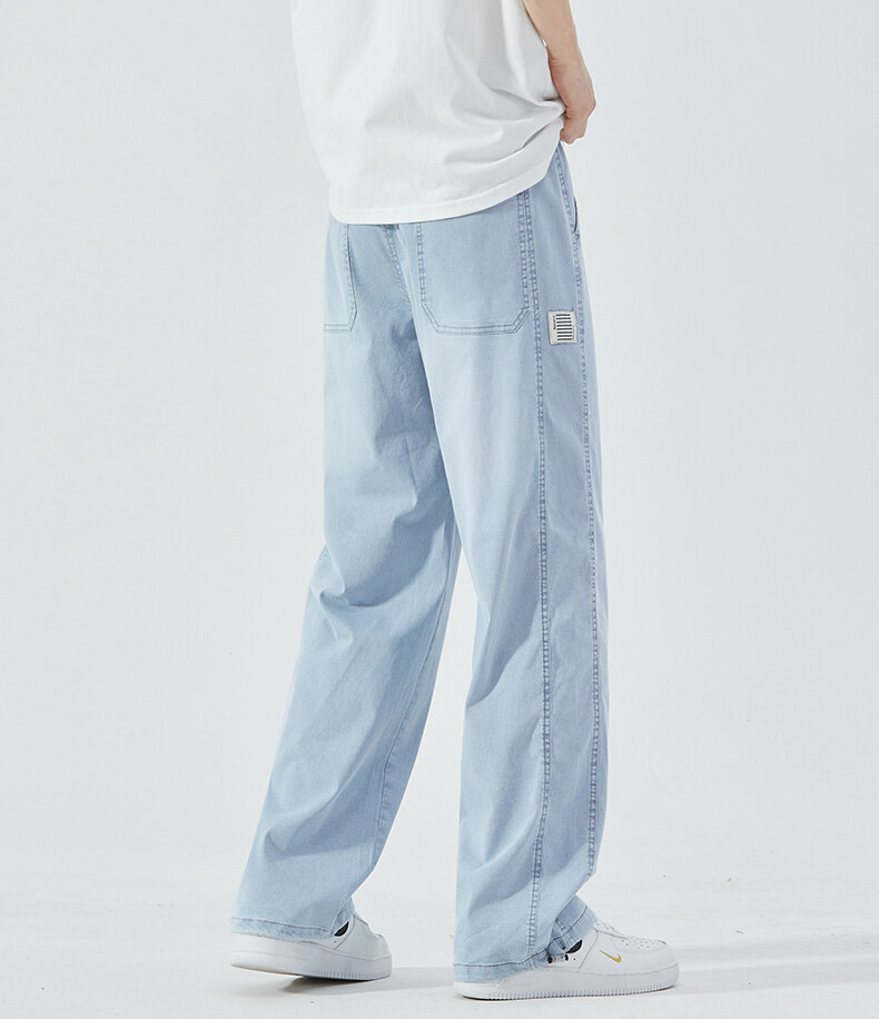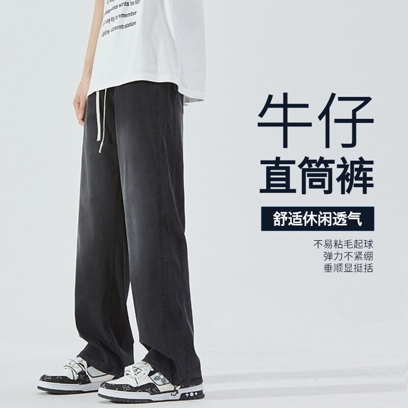 여름 아이스 센스 청바지 남자의 느슨한 얇은 스트레이트 고급 아이스 실크 바지 약간 넓은 캐주얼 바지스토어 가기