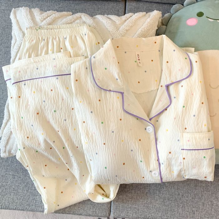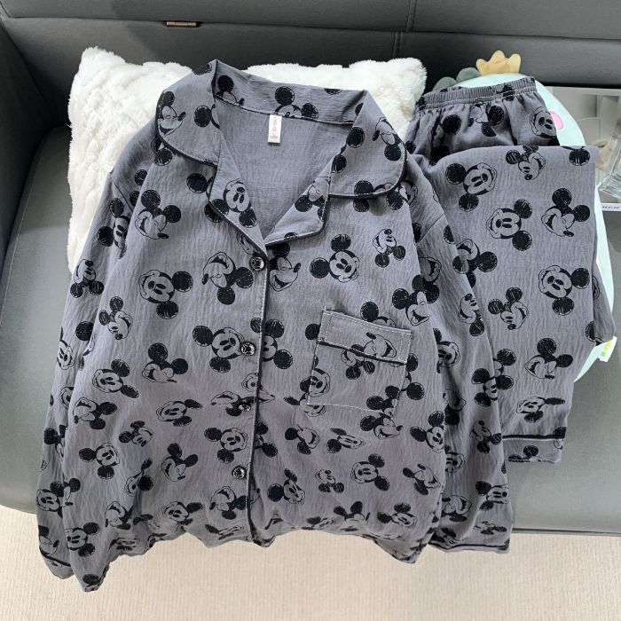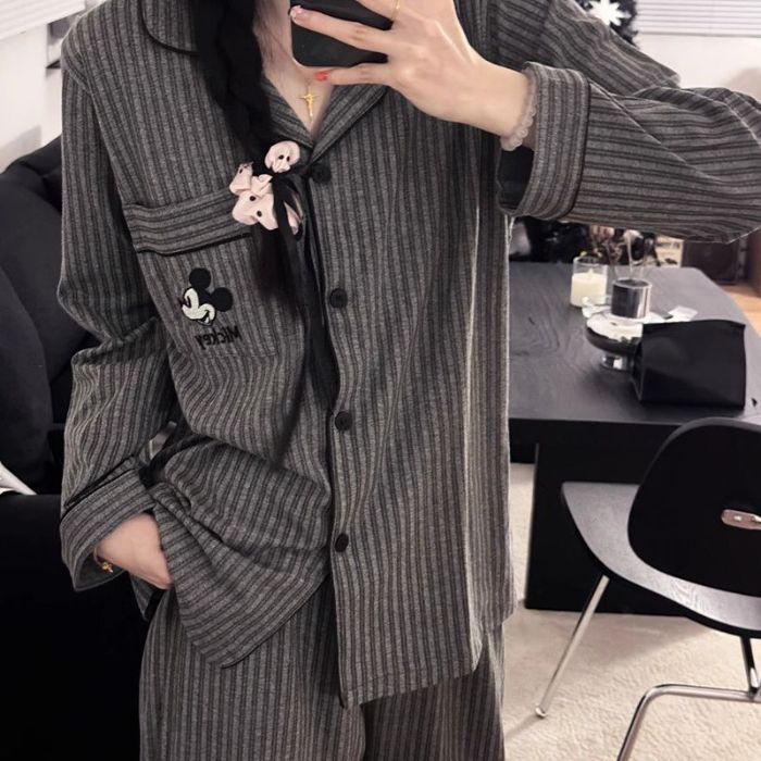 구름 면화 잠옷 여성의 봄과 가을 새로운 도착 여성 만화 인쇄 카디건 긴팔 홈 의류 세트 외부 착용스토어 가기