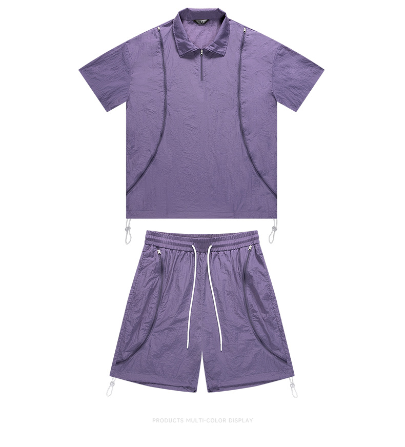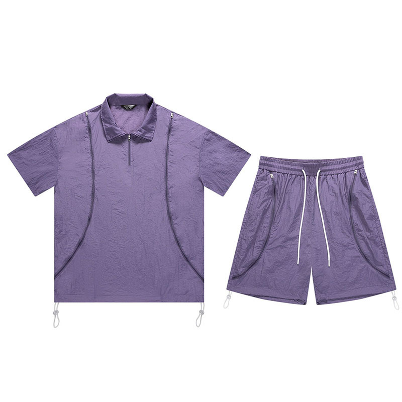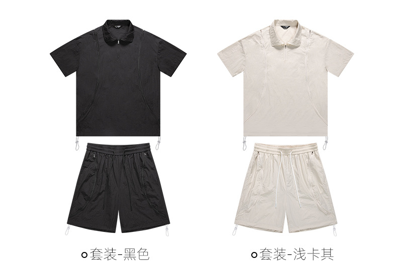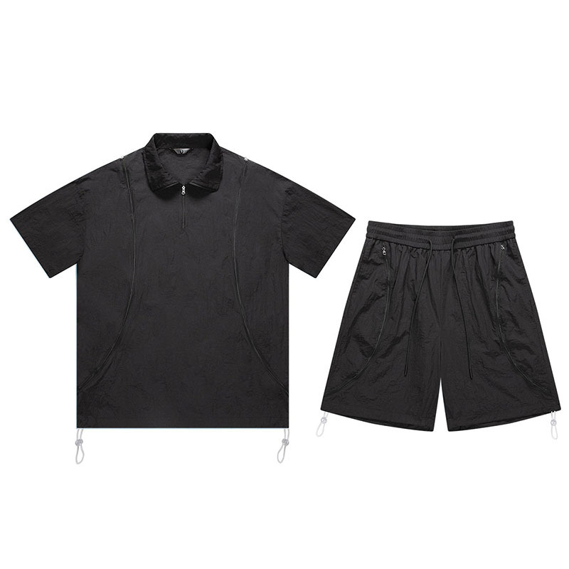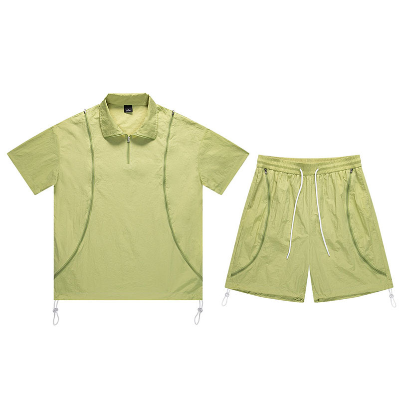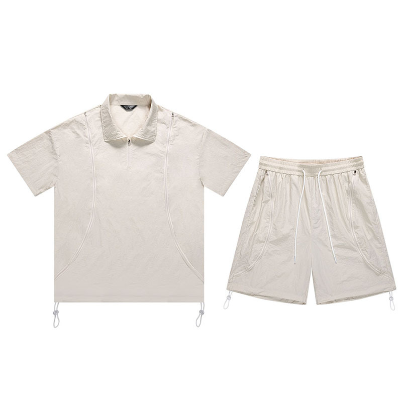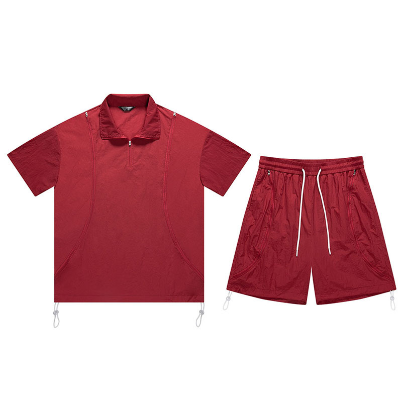 아메리칸 스타일 남성 캐주얼 스포츠 야외 느슨한 세트 남성 여름 커플 패션 브랜드 작업복 반바지 투피스 세트
